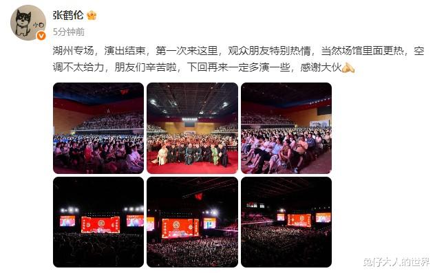 德云社张鹤伦深夜发文,晒湖州专场观众席照。台下满当当,座无虚席。观众热情,演员兴奋。要不说,什么事情,都没有十全十美。张鹤伦也指了出来,就是现场空调不给力。对于演出现场空调的抱怨,张鹤伦可不是第一次了。主办方、演员都会提前彩排,看场地,空调的事情,就没有注意吗?上次在绍兴,张鹤伦提到登台半小时,一身湿透,这次呢?浙江有这么热吗?