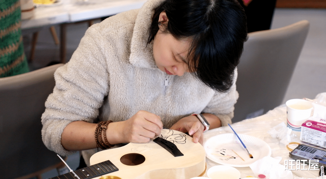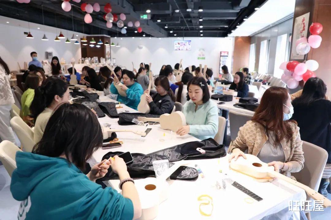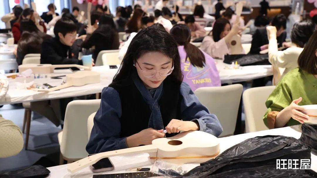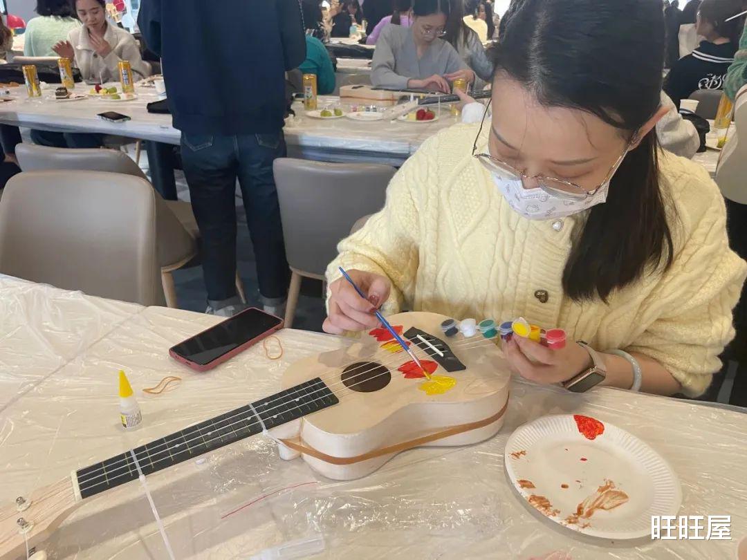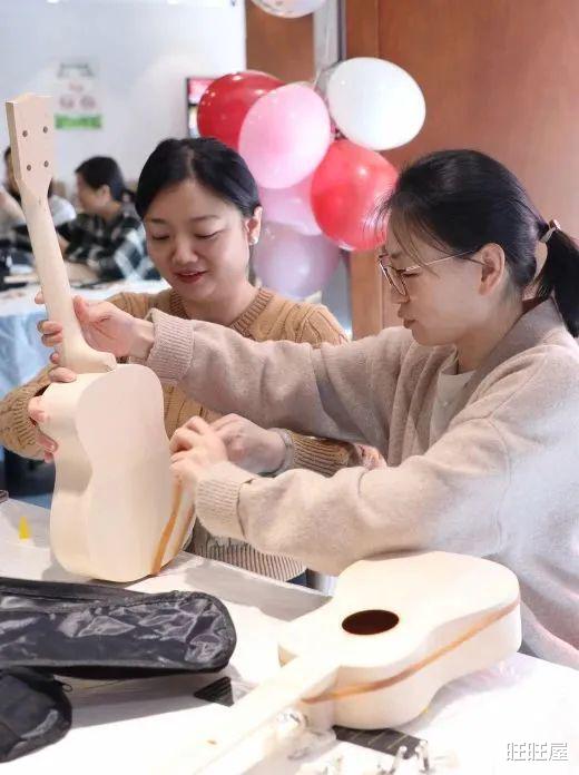 活动过程中,专业老师向大家讲解尤克里里的基本知识和制作过程,大家兴致勃勃、大显巧思,亲手装上琴码、绷上琴弦、调整音色、绘上彩绘......活动现场洋溢着欢声笑语。在老师的指导下,一件件精致的尤克里里被制做出来。