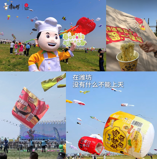 四月的潍坊,风里有春天的味道,天空直接变身巨型广告位,一年一度的潍坊风筝节准时开大,各式奇葩创意风筝轮番升空,主打一个只有想不到,没有飞不上天!就在这场神仙打架的风筝盛宴里,超级显眼包康师傅高调炸场,直接把泡面搬上天空、摆进现场,凭实力刷屏朋友圈,主打一个:走到哪,整活到哪!。
