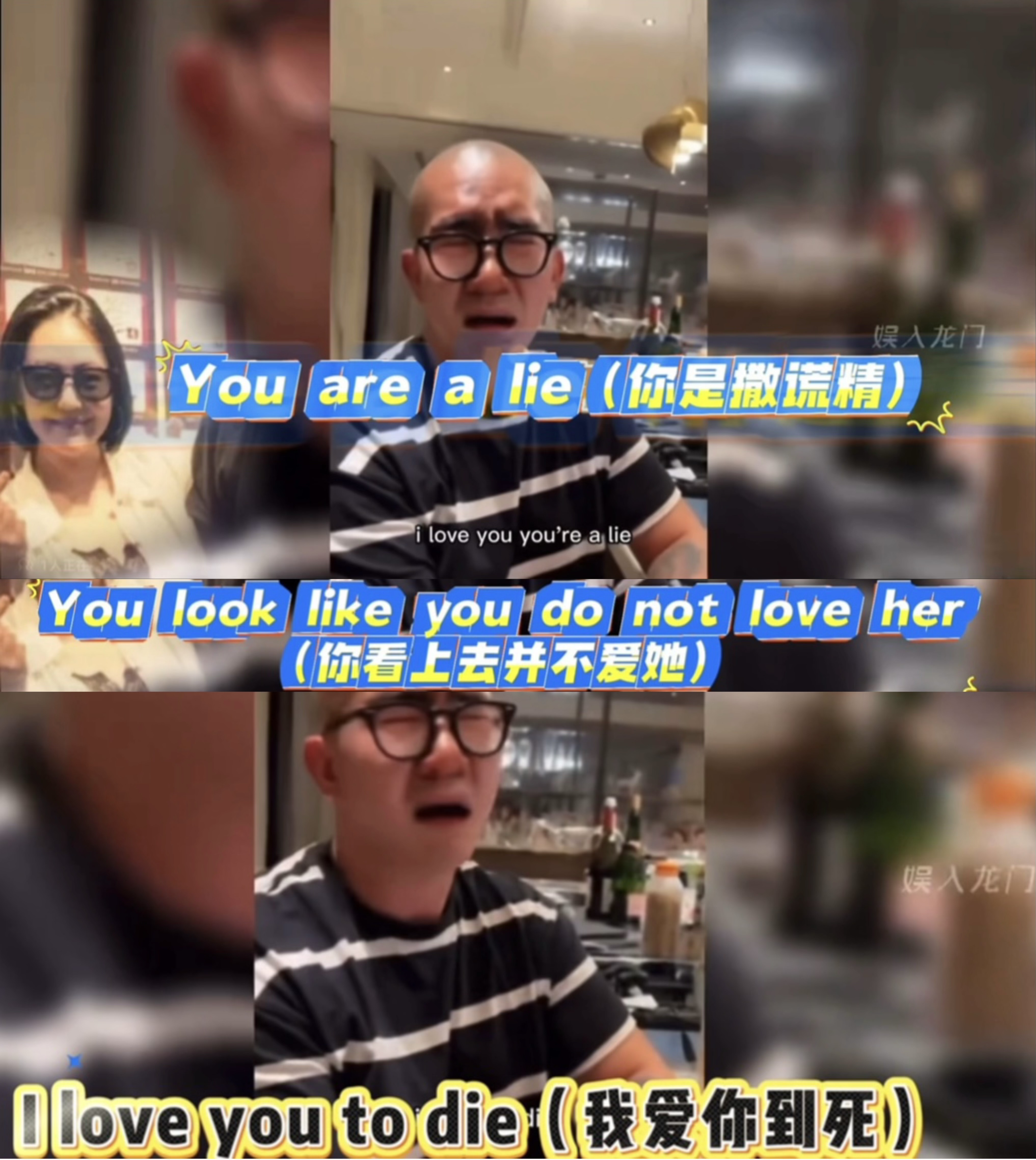小s说他“you are a lier(你是个撒谎精),you look like you do not love her(你看上去并不爱她),具俊晔依旧能够沉稳得、用力扭曲整张脸对大s反复表白“I love you to die”(我爱你爱到死)