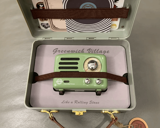推荐理由:这款音响最吸引人的地方是它的复古外观,金属材质与经典设计相结合,散发出温暖怀旧的气息。它的体积适中,重量为435g,便于随身携带,特别适合旅行或户外活动使用。