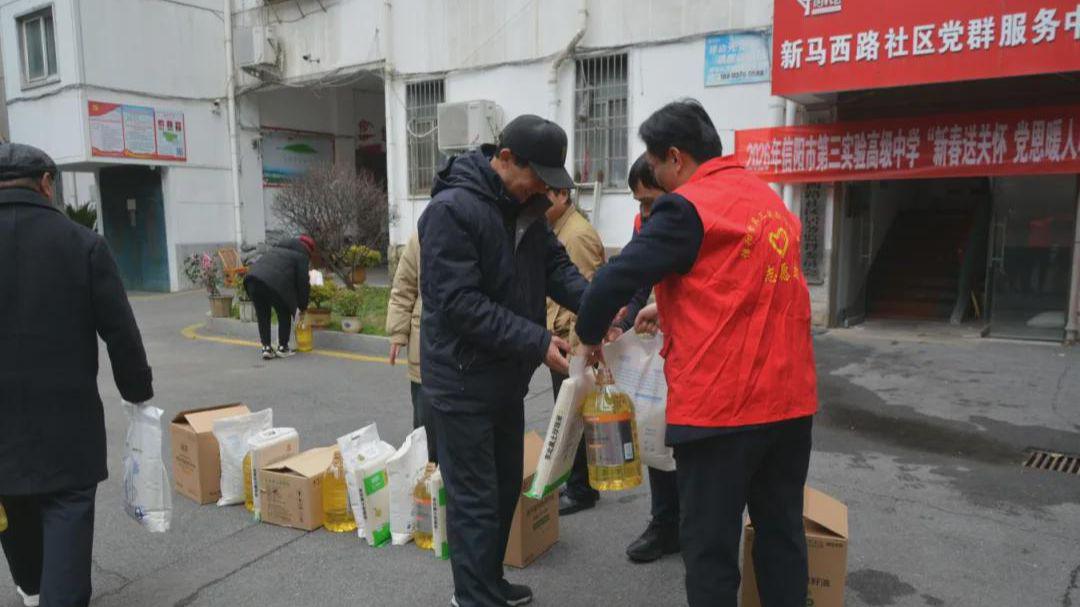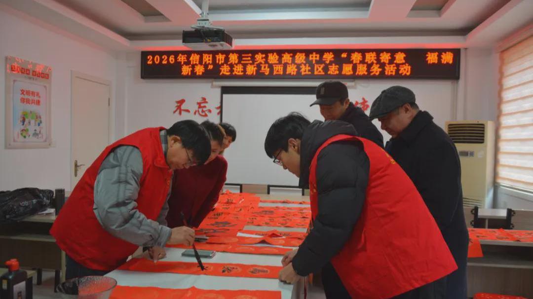 为弘扬中华优秀传统文化,传递温暖关怀,2026年1月28日,信阳市第三实验高级中学党总支副书记、校长姚俊清带领党员志愿者走进“支部联支部”结对的新马西路社区,开展“春联寄意,福满新春”暨“新春送关怀,党恩暖人心”主题志愿服务活动。