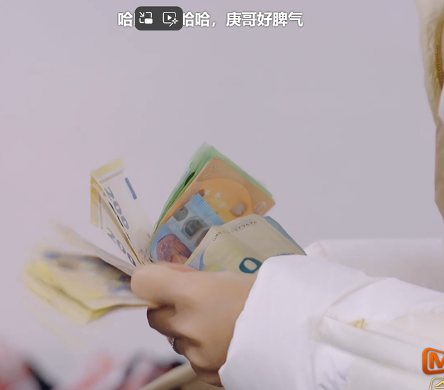 韩庚照做,卢靖姗专心的数钱,韩庚也很着急的在旁边跟着数,着急时还顺嘴说出了钱数,打扰了卢靖姗,卢靖姗一个眼神瞪过去说:我在数呢,你都把我数乱了。韩庚马上闭嘴。