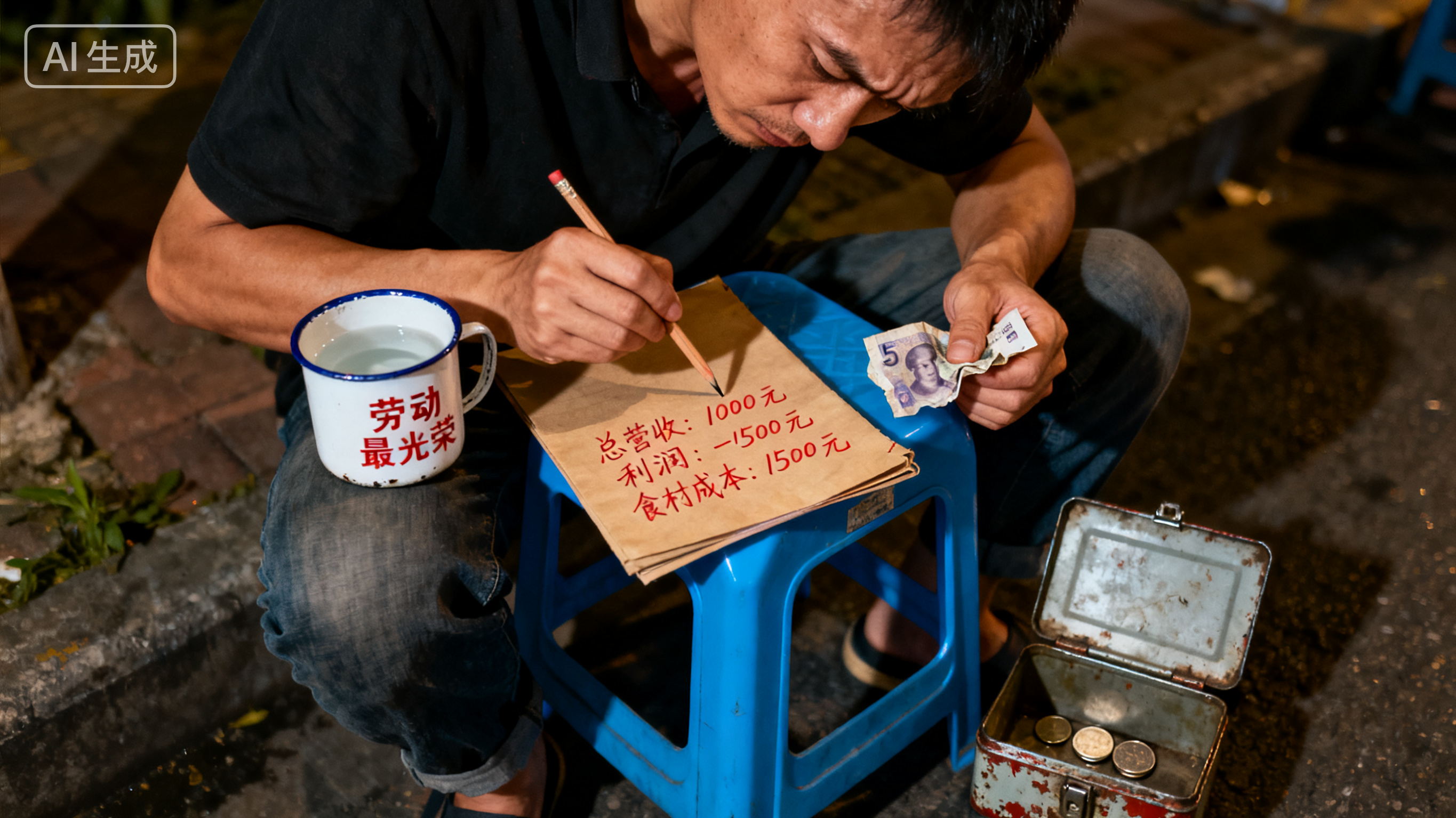 还有摊位费、交通费、锅碗瓢盆的损耗费,这些都还没算!