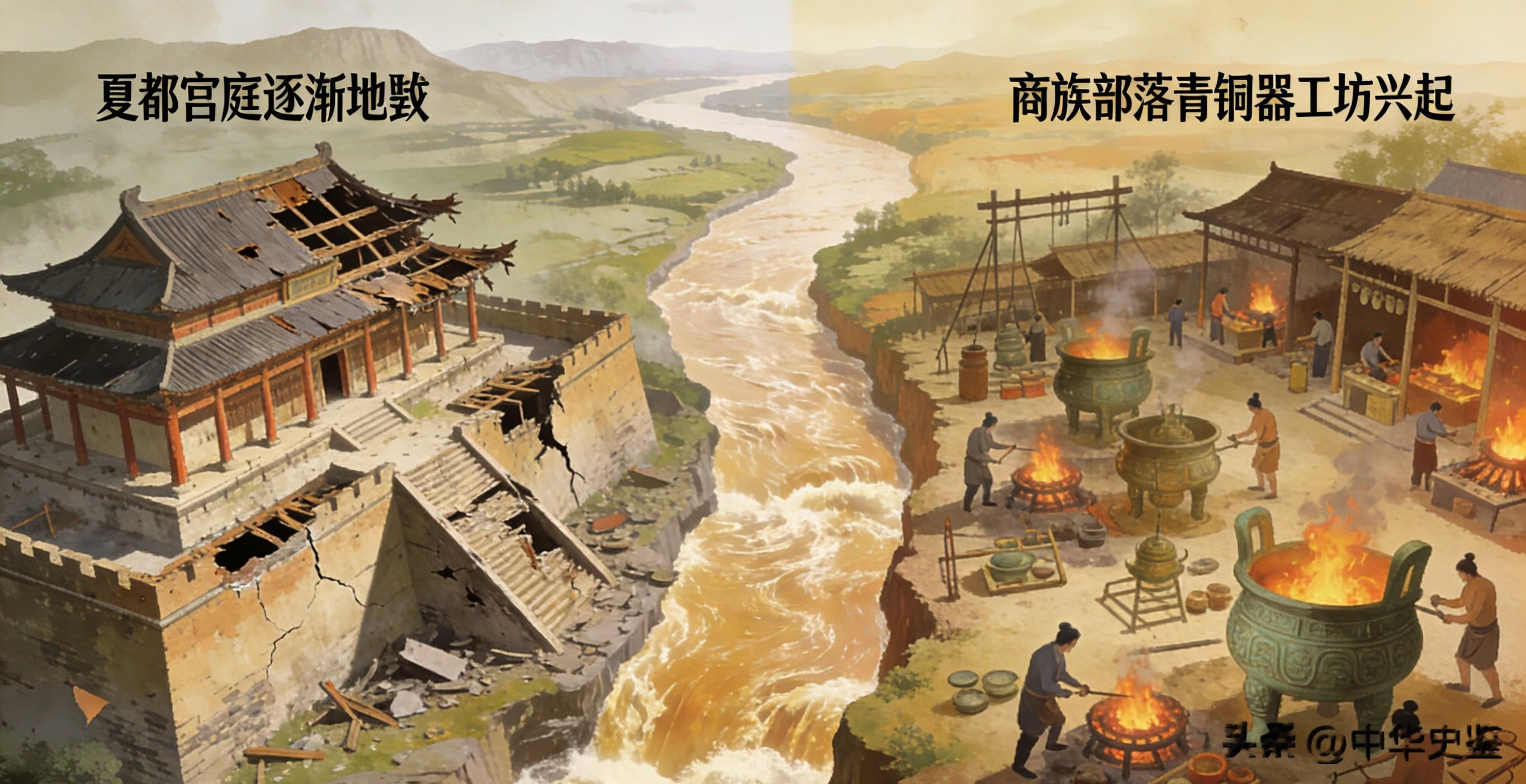 四、夏朝灭亡的复杂性:权力、生态与文化的交织除了自然灾害外,考古还揭示当时社会政治可能处于激烈变革期。随着技术进步和文化交流,新的势力正在崛起,商族的兴起并非偶然,更像是应对新时代挑战的必然结果。