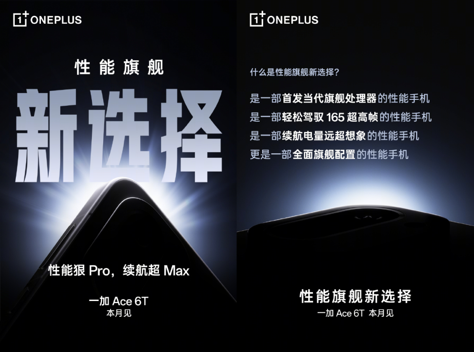 性能旗舰新选择,一加 Ace 6T,我们本月见!”
