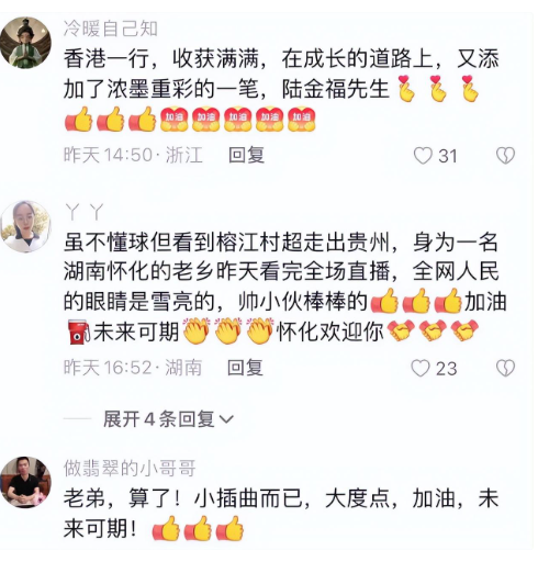 董永恒还晒出了与谭咏麟握手的合影,并在接受对方递小旗后,以双手合十鞠躬向谭咏麟表示感谢。他表示:“能把榕江带到国际大舞台上,这个意义层面上,我们已经赢了。”这样的回应不仅展现了队长的风度,更在舆论中得到了一致好评。