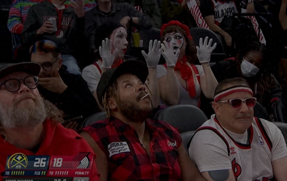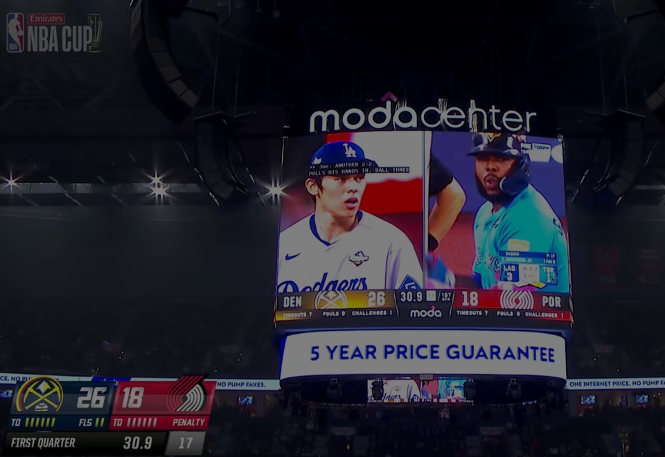 比赛的精彩程度似乎被场外因素所冲淡。当首节比赛仅剩下30秒时,开拓者主场计时器突然发生故障,导致比赛被迫中断。这并非一次短暂的调试,现场维修工作持续了大约18多分钟,比赛陷入了长时间的停滞。在高度商业化和专业化的NBA赛场上,出现如此严重的设备事故实属罕见。现场气氛一度十分尴尬,为了安抚现场观众的情绪,防止大家在漫长的等待中感到无聊,现场的大屏幕甚至开始播放起了棒球比赛的特写镜头,适逢万圣节,现场球迷的古怪装扮镜头也成为现场导演的素材库。现场这一事故插曲让本就因罗威复出而微妙的球队氛围,又增添了几分奇怪画面。