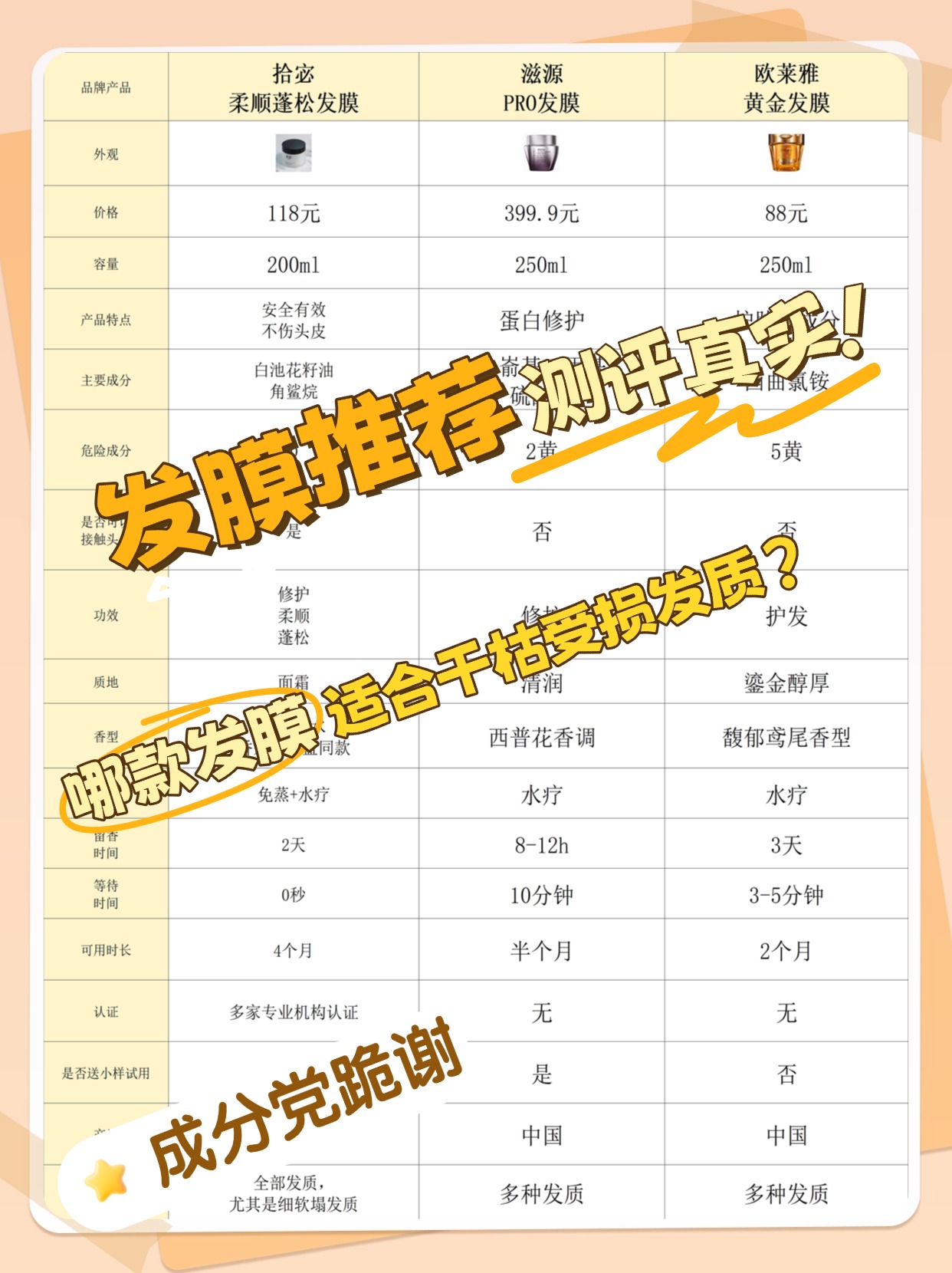 很多人都在问干枯受损发质到底该怎么选发膜,其实在选之前得先搞清楚几个基础问题,比如发膜到底有用吗,答案肯定是有用的,它能在头发表层形成保护膜,填补毛鳞片间隙,对烫染后干枯、易断的头发很有帮助,还有人纠结发膜多久用一次比较合适,正常受损发质一周用两到三次就够了,用太频繁反而容易让头发负担过重显得扁塌,很多人用发膜总没效果,其实是用法出了问题,洗完头把头发擦到不滴水再厚涂发膜,避开发根只抹在发中和发尾,停留五到十分钟再冲洗干净,这样才能发挥作用,不少姐妹还会问发膜碰到头皮会不会导致脱发,其实只要不是大量堆积在头皮上、不及时清洗,一般不会有这种情况,主要还是头皮本身出油多再闷着才容易不舒服,我测评过不少针对干枯受损发质的发膜,从使用感受、吸收速度、冲洗后顺滑度等多个方面都做了实际测试,没有偏向任何一款,只记录真实使用状态,接下来就跟大家聊聊我这么久测评发膜总结下来的选购经验,都是实际试出来的实用技巧,没什么虚的,觉得有用的可以先点赞收藏起来,免得之后想看找不到了。