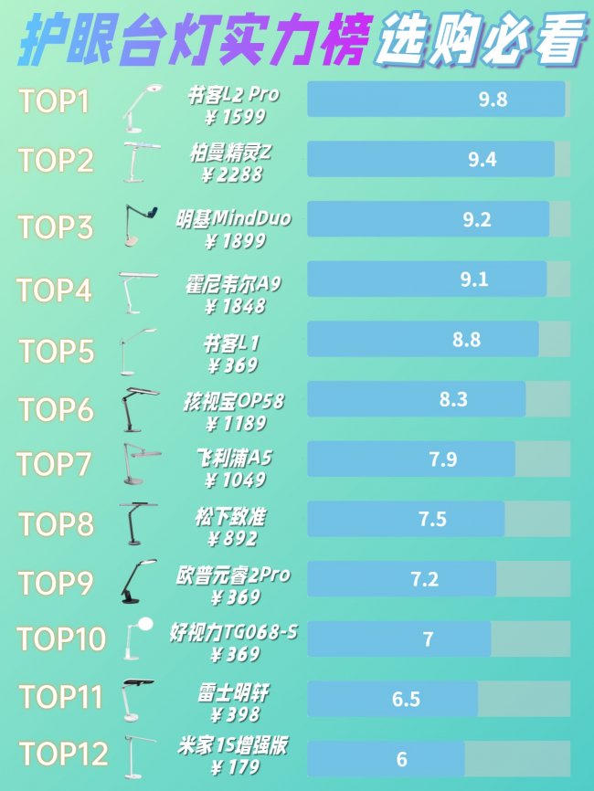 1.书客:医学级护眼标杆,以RRT红光养眼技术、紫光激发全光谱为核心,有效降低96%近视风险,缓解92%用眼疲劳,从百元入门款到旗舰款均有覆盖,是专业护眼的首选。