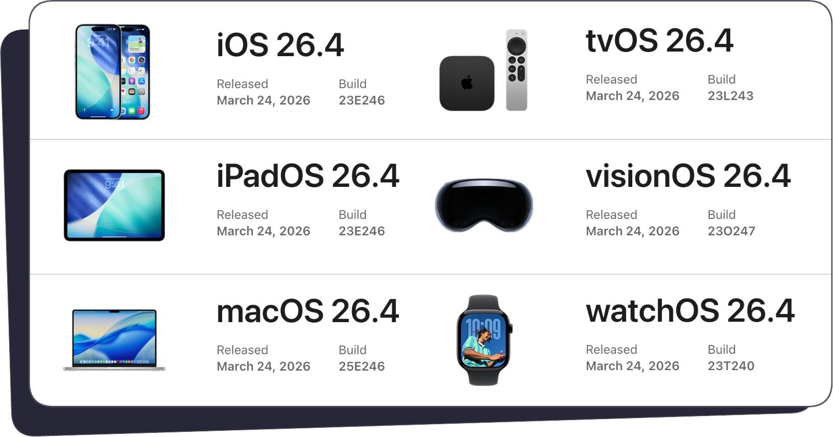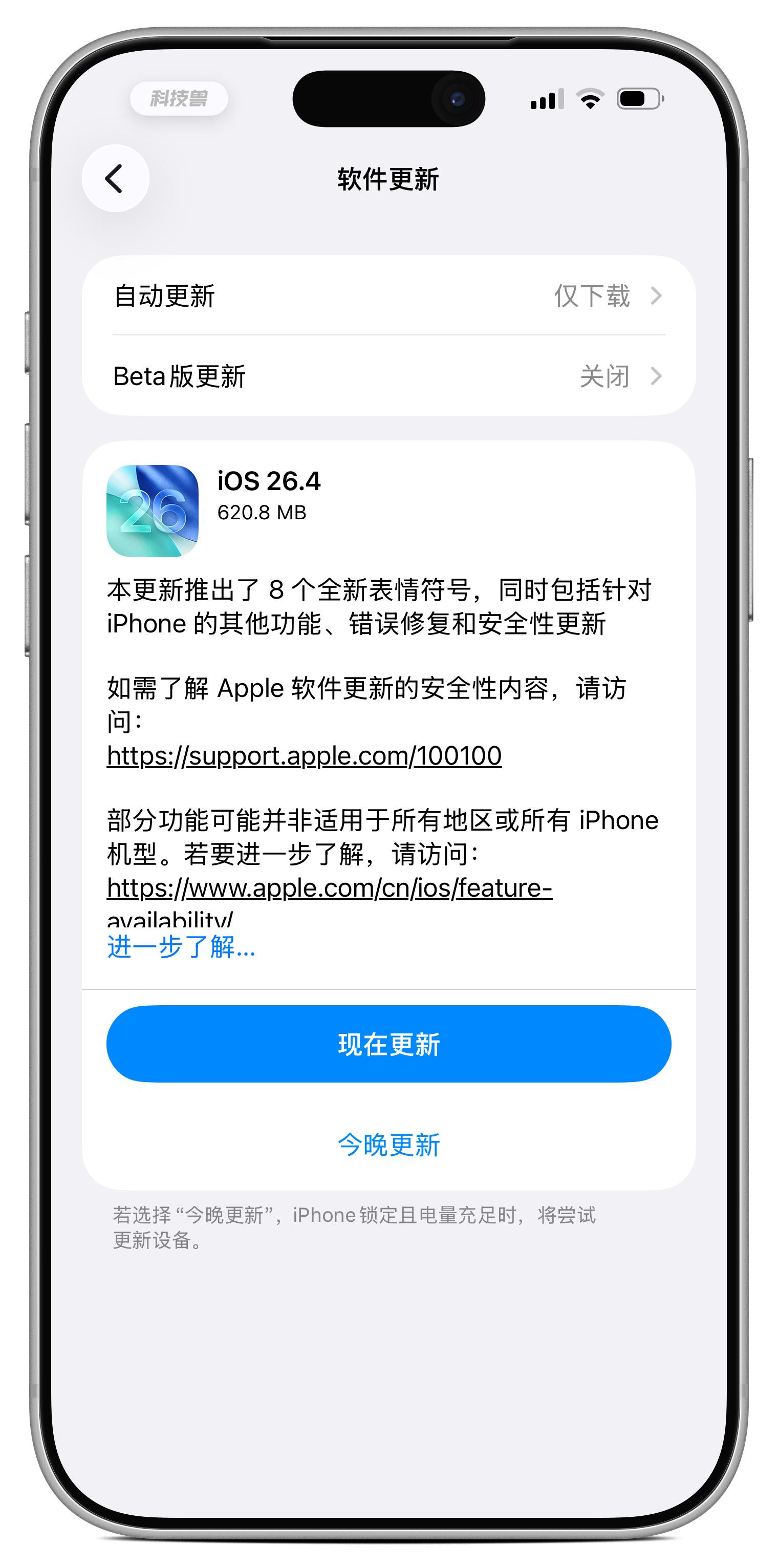 苹果在今天 3 月 25 日凌晨向用户正式推送了 iOS 26.4 正式版系统更新,同时到来的还有 iPadOS 26.4、macOS 26.4、watchOS 26.4 等一系列系统更新。