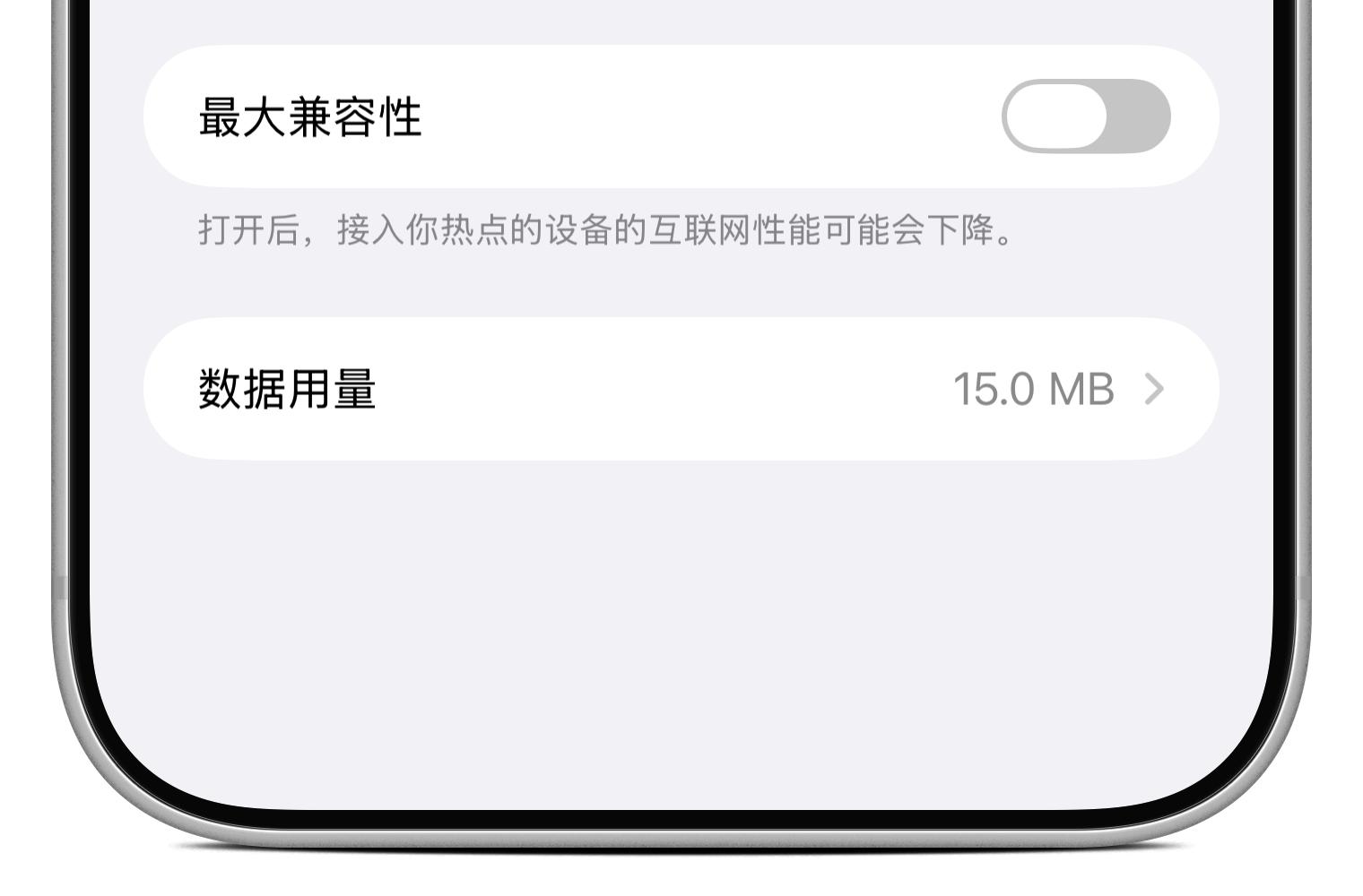 热点统计iPhone 的「个人热点」功能中,iOS 26.4 会在功能页面直接提供数据用量显示,不需要再去蜂窝网络里面查看了。