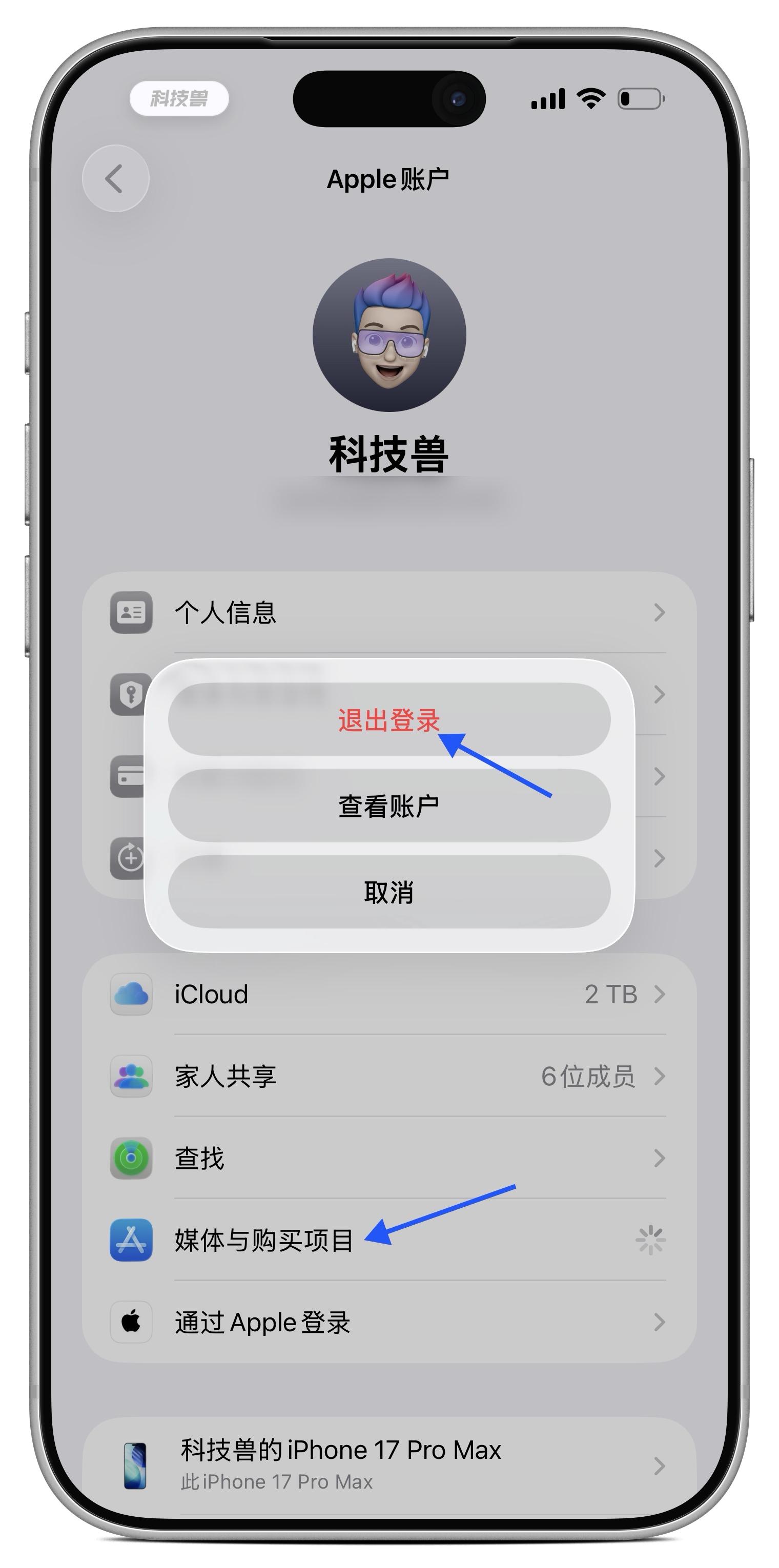 同时,App Store 已取消账号退出按钮。如需切换账户,需要前往 iPhone 设置 → Apple 账户 → 媒体与购买项目 → 退出登录。