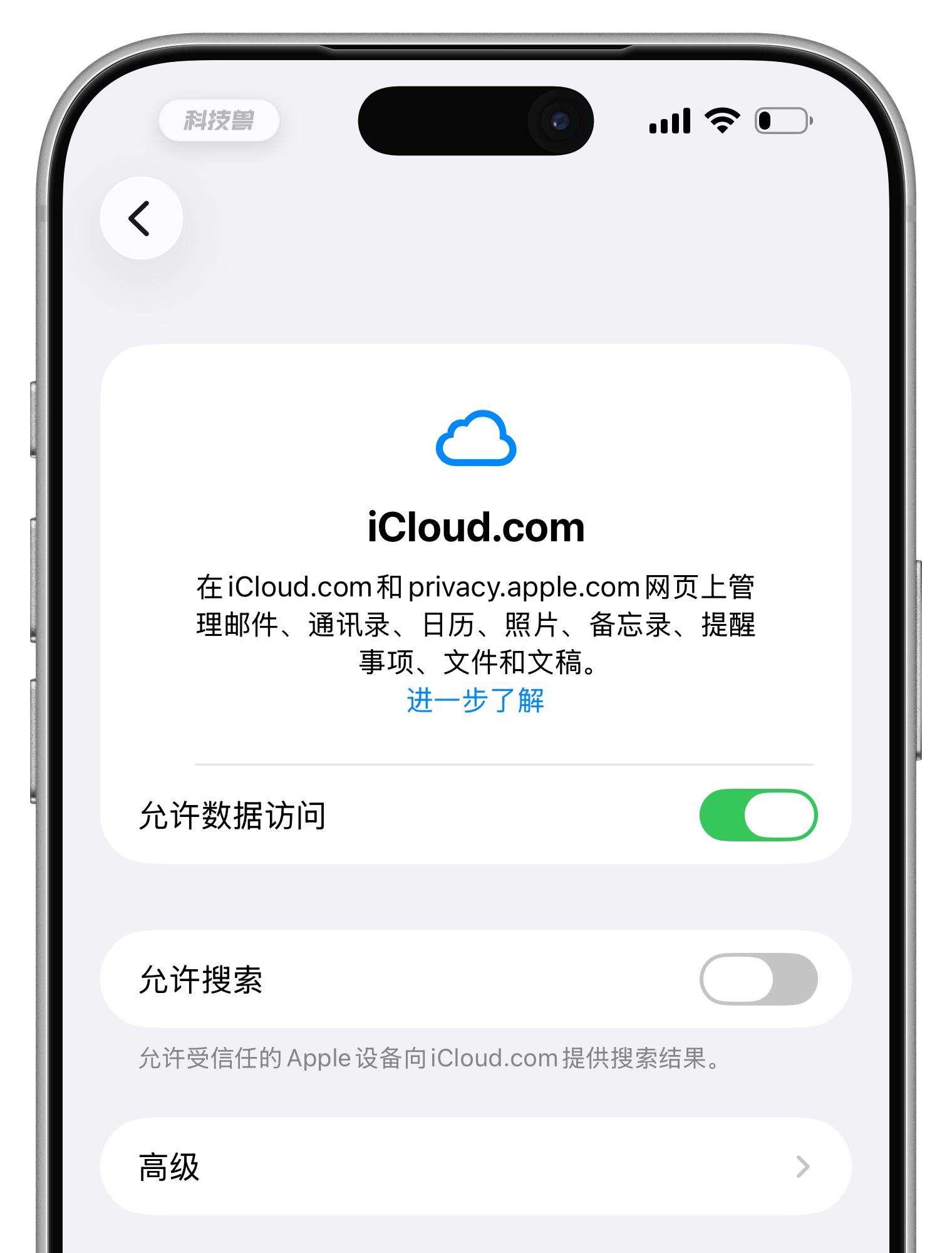 iCloud+ 调整在 iPhone 设置的 Apple 账户 → iCloud 页面底部,原先的「在网页上访问 iCloud 数据」已改为「iCloud.com」 二级页面,可控制: