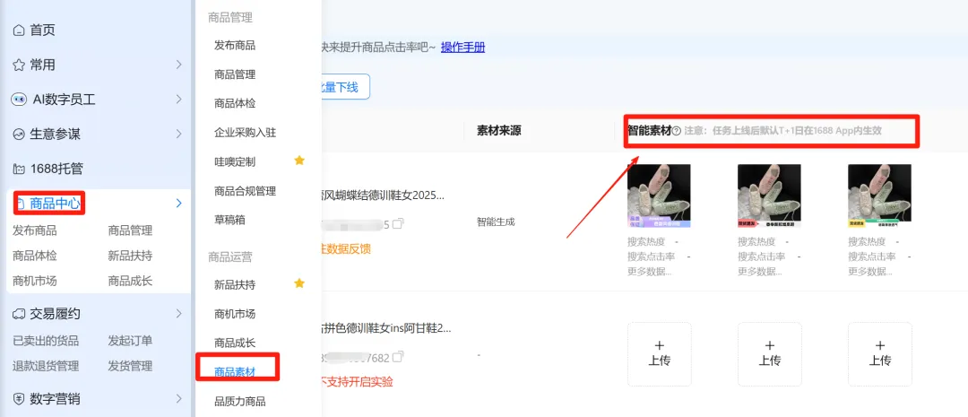 1688店铺后台入口-商品中心-商品运营-商品素材: