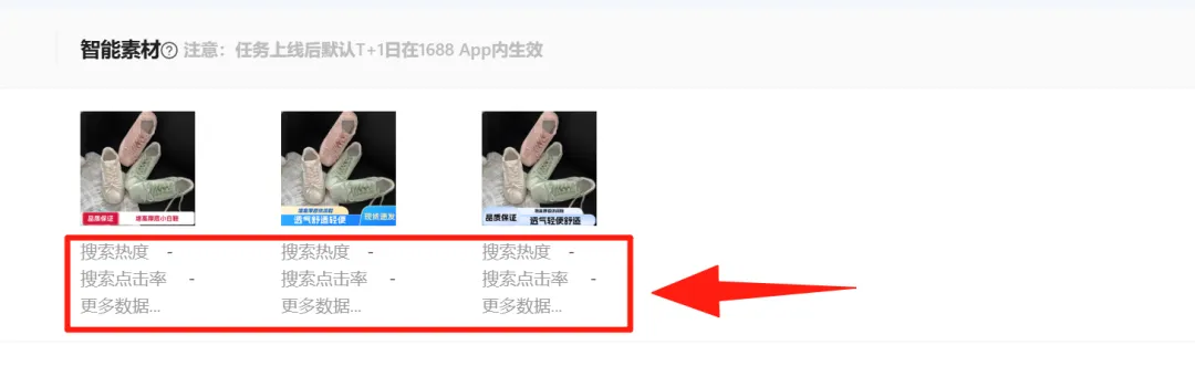 智能素材功能的图片在APP搜索场域进行实验,并联动详情页保持一致性展示。推荐、购物车等其他场域不会生效智能素材样式。现在就用「智能素材」生产吧,让爆款来得更简单!