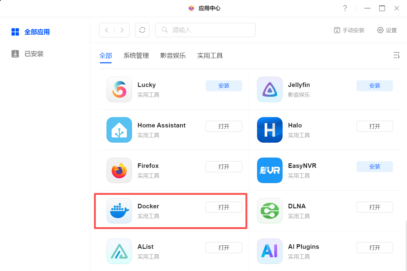 如果你手里也有绿联NAS,先确认下设备已经升级到UGOS Pro系统。第一步先安装Docker,打开绿联云,进入【应用中心】,找到“Docker”直接一键安装,安装完成后,系统会自动生成“docker”共享文件夹,后续路径映射就靠它,不用我们手动创建,省了不少事。