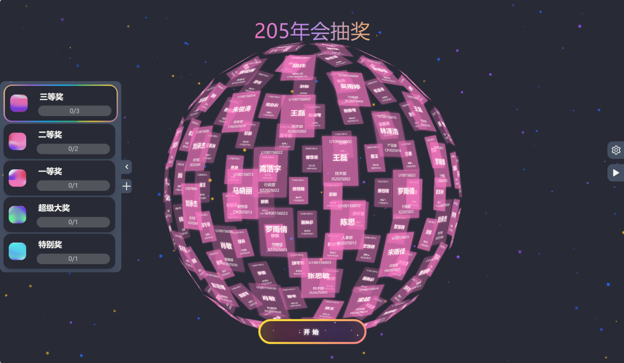 年会筹备的小伙伴集合!作为公司连续几年的年会筹备者,最近满脑子都是怎么把抽奖环节做出彩,毕竟这可是所有人最期待的环节,以前的老套路都玩腻了,要么是纸条抽签,又麻烦又没仪式感,要么是PPT滚动名单,画面单调还容易卡顿,要么用第三方小程序,不是要看广告就是要付费,一点新意都没有。