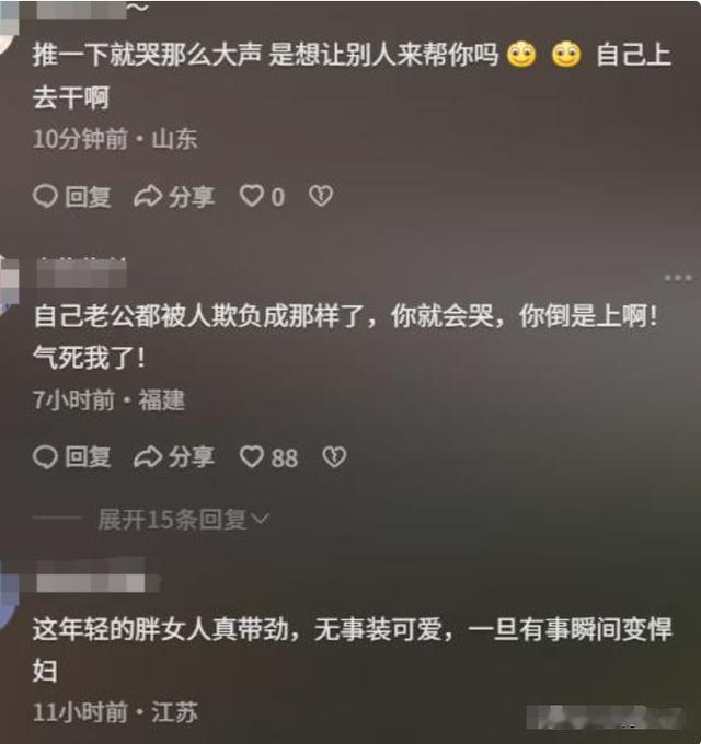评论区出现了一堆评论:明明小女孩还那么小,最后却因为不小心的入镜遭受到微胖女子的殴打。
