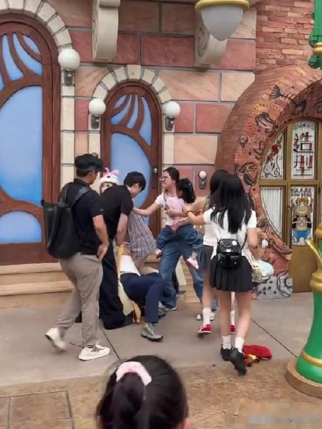两方打架的地方属于迪士尼一个自由打卡点,绝不可能在此出现排队插队的问题。
