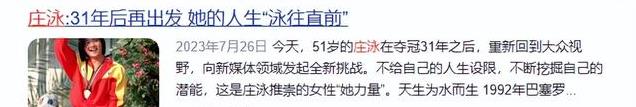 资料参考:2023-07-26新民晚报——庄泳:31年后再出发 她的人生“泳往直前”