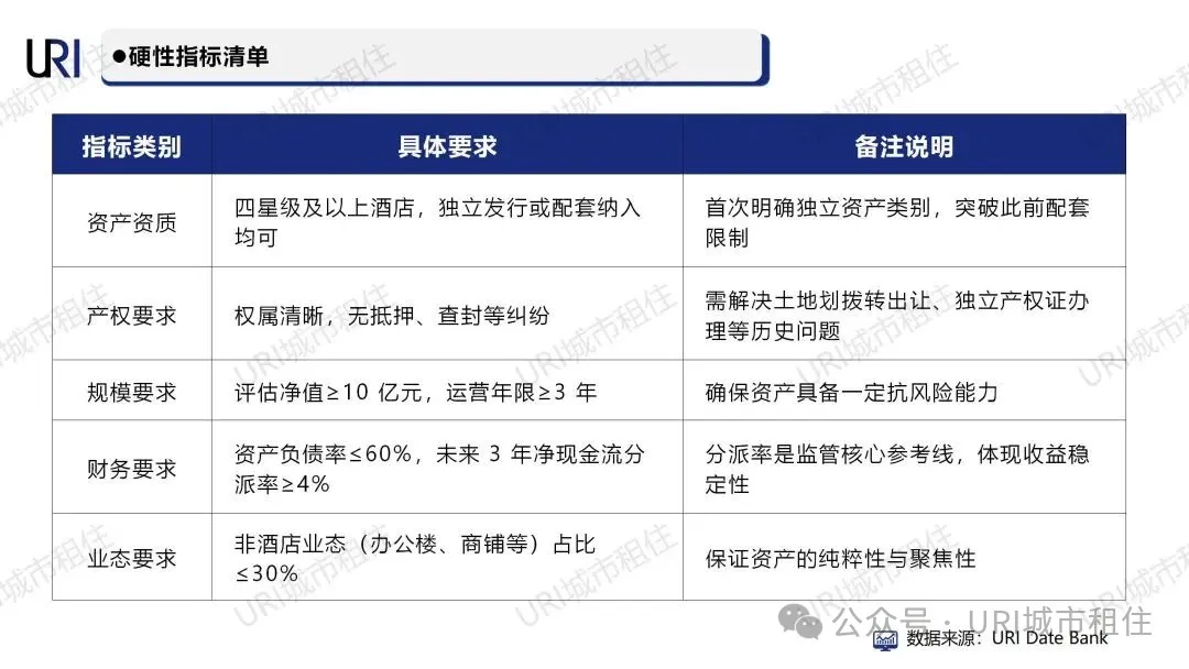 政策对酒店REITs设置了严格的“筛选标准”,既包括硬性指标,也涵盖合规要求: