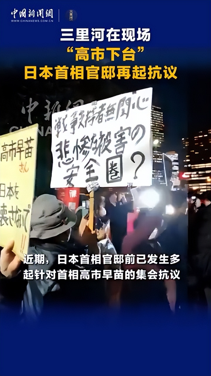 东京街头的抗议声浪越来越大。12月19日,上千名民众聚集在首相官邸前,举着"停止战争言论"的标语牌,高喊"高市下台"。一位经营温泉旅馆的老板愤怒地说:"我的旅馆70%客人来自中国,现在空房率高达80%,首相难道要我们都去喝西北风?"