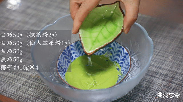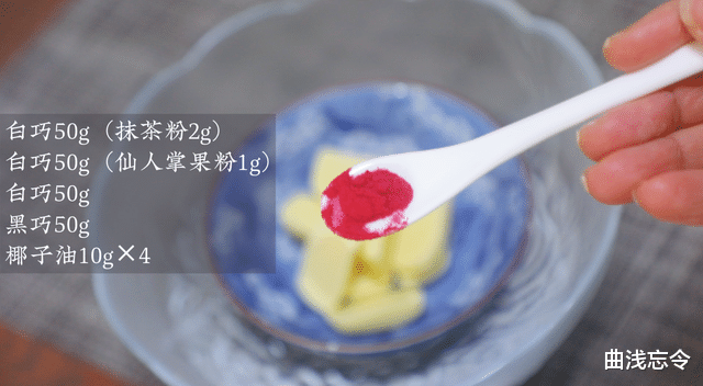 其他:白巧150g、黑巧50g、抹茶粉2g、仙人掌果粉1g、椰子油40g、装饰糖适量