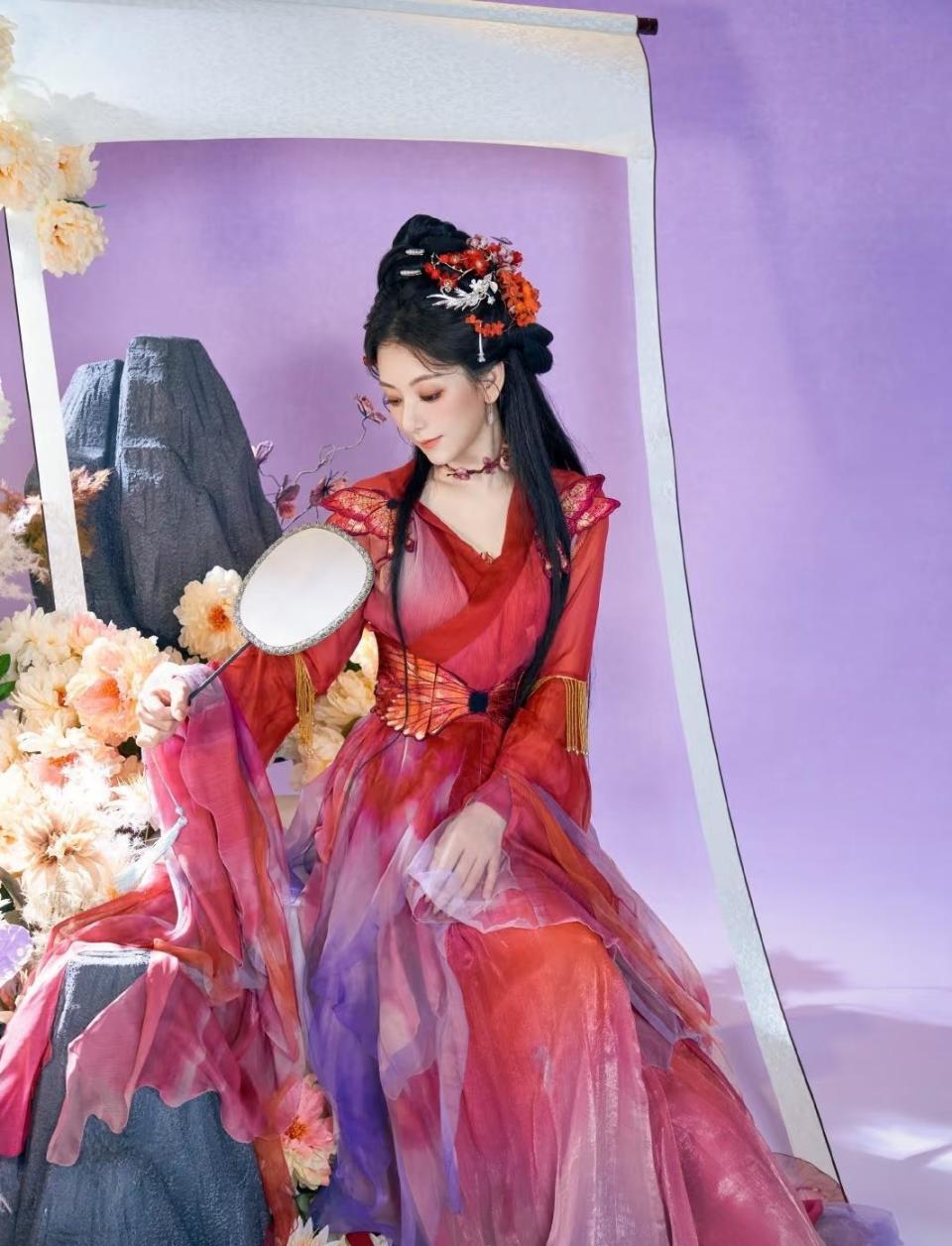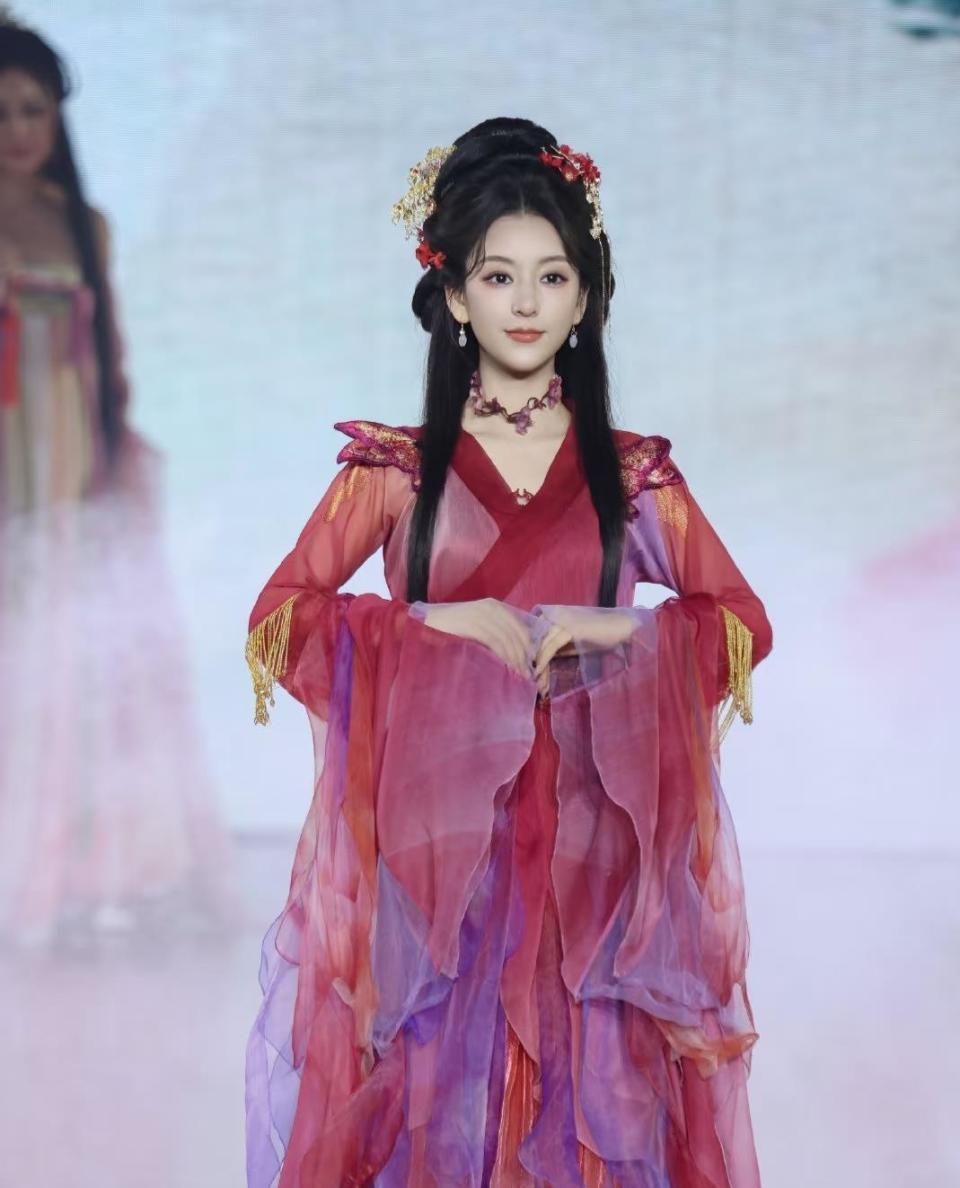 方媛的造型团队透露,这次造型灵感来自唐代壁画。 腰封设计特意采用弹性面料,既保证舒适度又维持版型。 团队准备了六套备选方案,最终红色方案因其显白特质胜出。