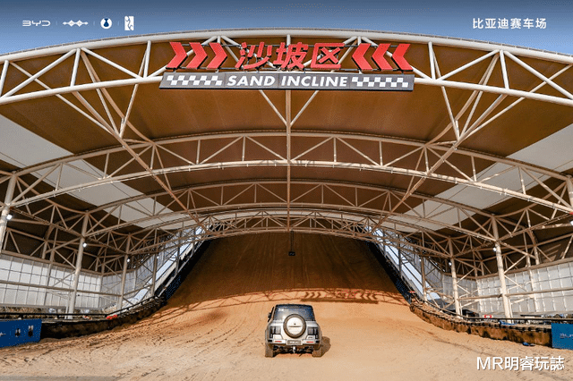 赛车场首创全地形场景,让用户一站式体验极致驾控。这里将全国特色地形 “搬进” 赛场,悬天沙坡区以 29.6 米垂直高度和 28° 冲坡落差斩获 “最高、最大的冲沙测试场” 两项吉尼斯纪录,顶部 300 平米观景平台让人们舒适观赏冲坡乐趣。浮水航行池为仰望 U8 专属打造,70 米长的水池中,透过透明亚克力窗,可直观看到车辆凭易四方技术实现水中直行、转向,重新定义极端环境安全标准。
