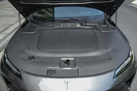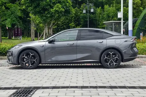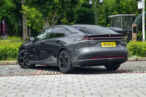 车身线条流畅优雅,采用了掀背式设计,车顶线条从A柱开始缓缓下滑至车尾,展现出轿跑车型的动感姿态。隐藏式门把手的设计不仅降低了风阻,还为整车增添了一份科技感。车尾部分,贯穿式尾灯与扩散器造型相得益彰,电动升降尾翼以及无边框车门等设计元素的加入,更是进一步强化了整车的科技氛围。