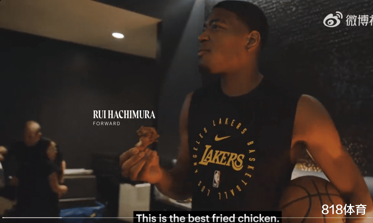 八村塁一边吃着鸡翅一边兴奋地喊道:“这是我吃过最好吃的炸鸡!”