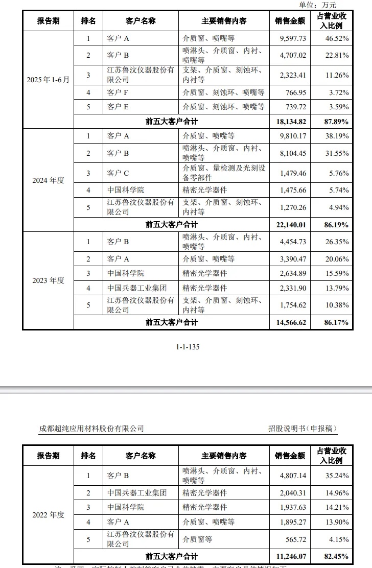 超纯股份的前五大客户情况如下: