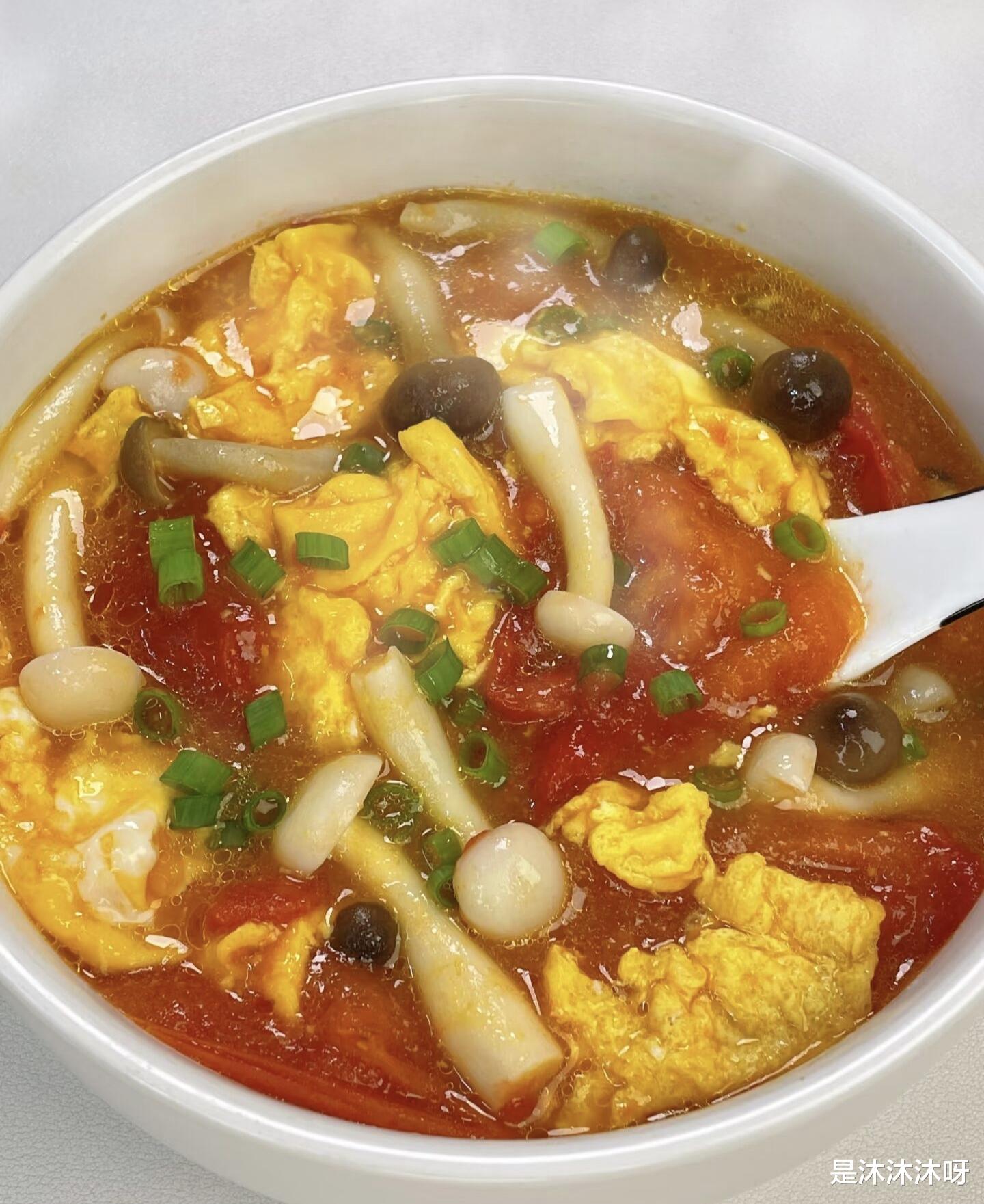天气转凉的傍晚,或者吃了油腻食物没胃口的时候,端上一碗热气腾腾的这道汤,红亮亮的番茄汤底飘着嫩黄的蛋花和白白胖胖的菌菇,撒一把翠绿的葱花,还没喝呢,口水就已经把嘴巴淹没了——酸甜的番茄香混着菌菇的鲜,喝一口直接鲜到天灵盖,胃里暖烘烘的,什么烦躁都没了。