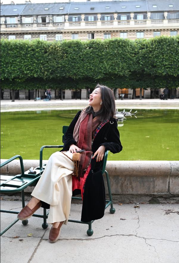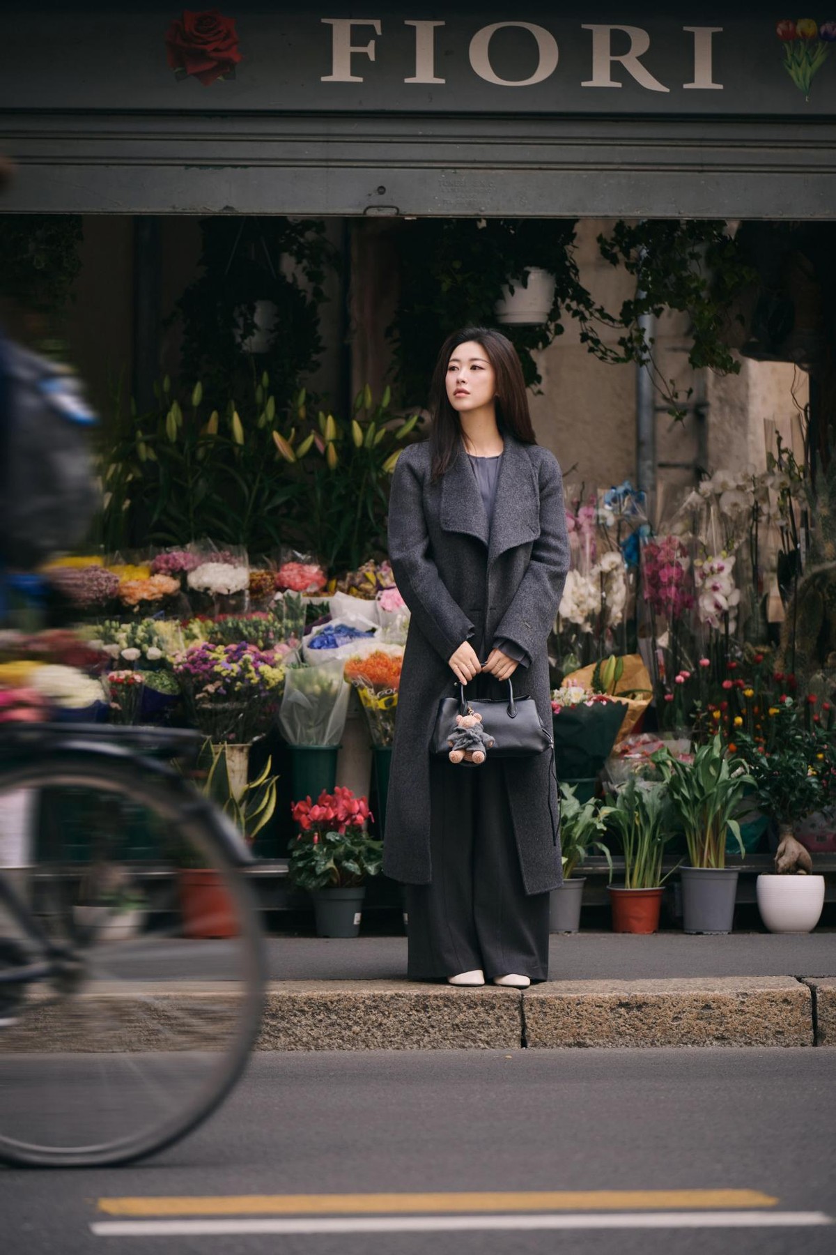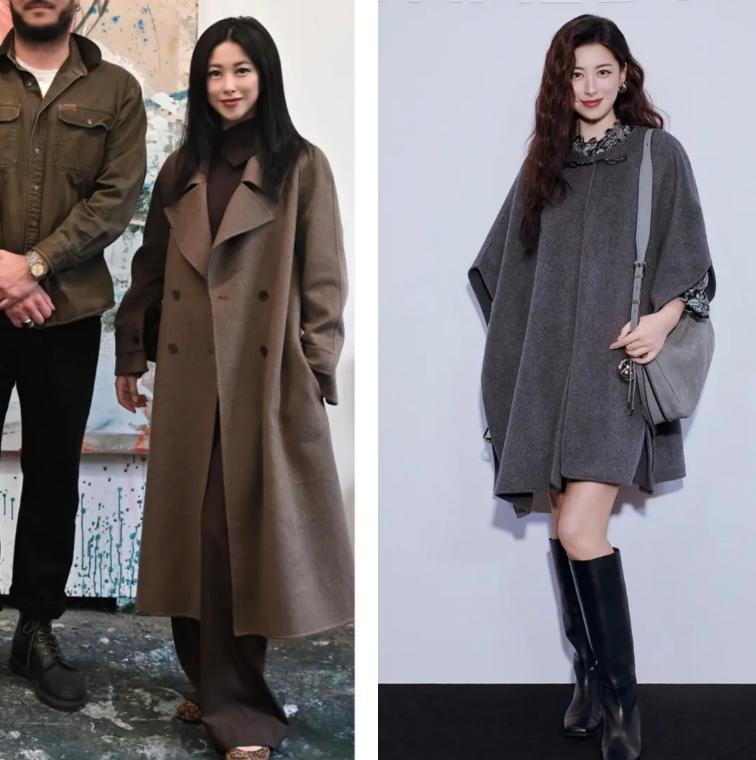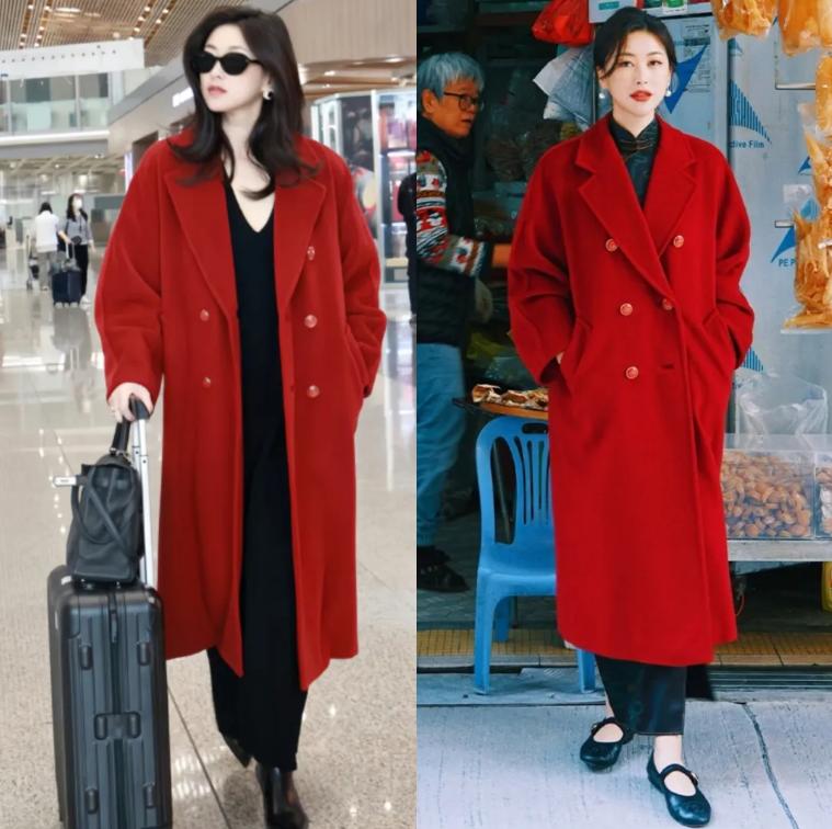 对于偏爱裤装的女性,朱珠的“大衣+阔腿裤和直筒裤”组合同样值得参考。她从不用紧身牛仔裤或运动裤搭配大衣,而是选择版型挺括、线条流畅的阔腿裤或直筒裤,裤长刚好盖住鞋面,露出纤细脚踝或搭配短靴,利落又显气场。