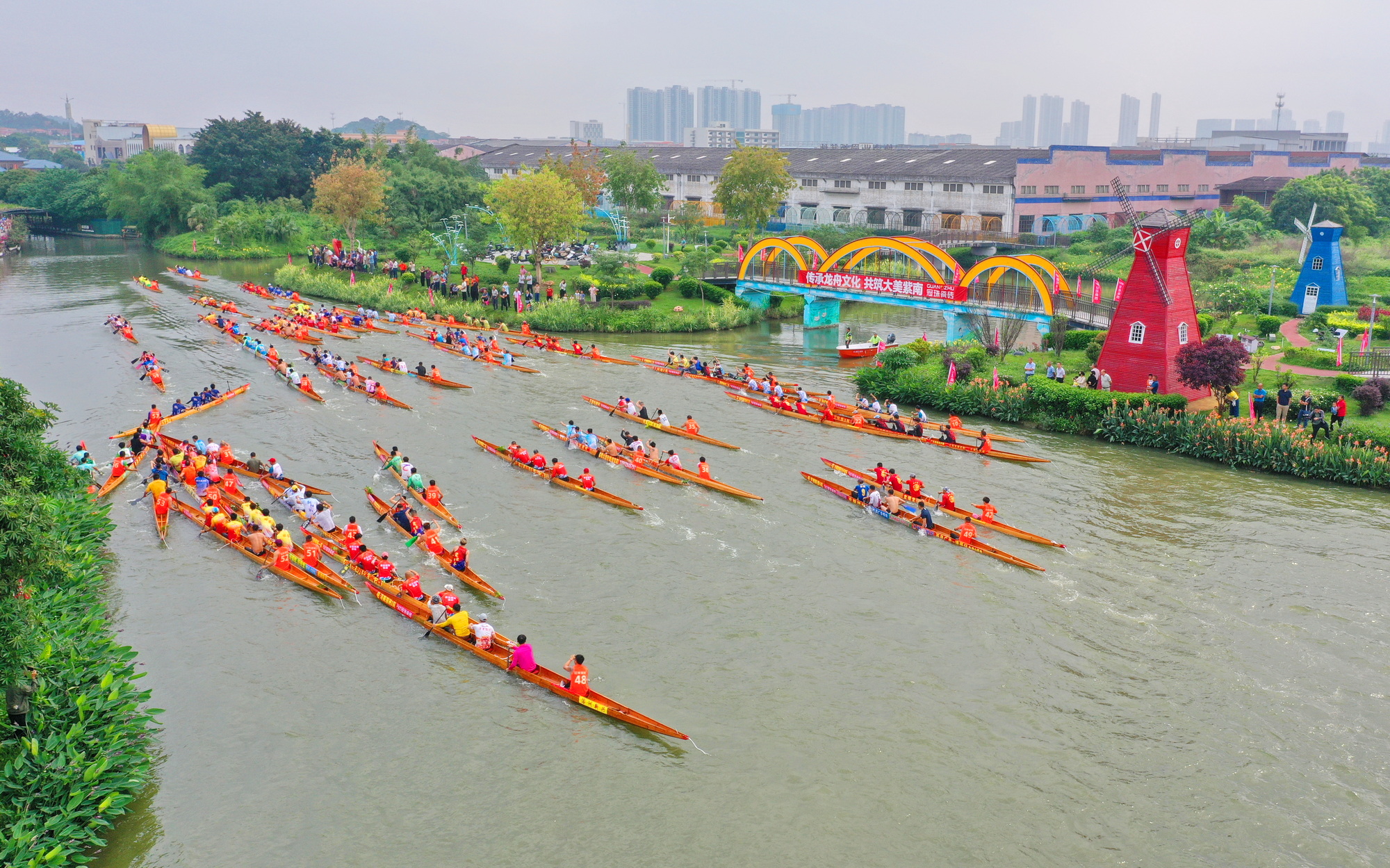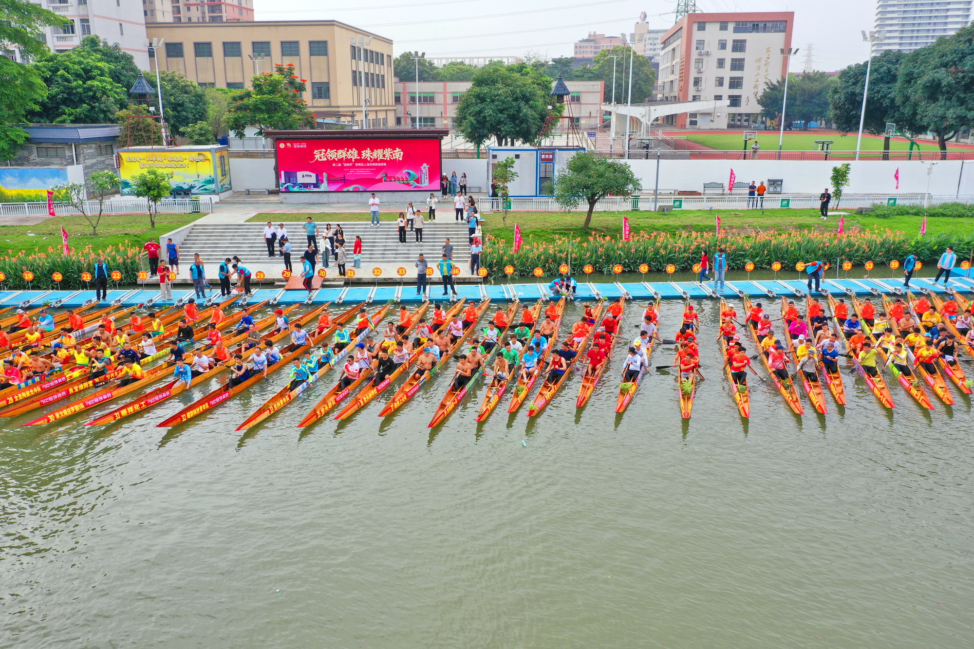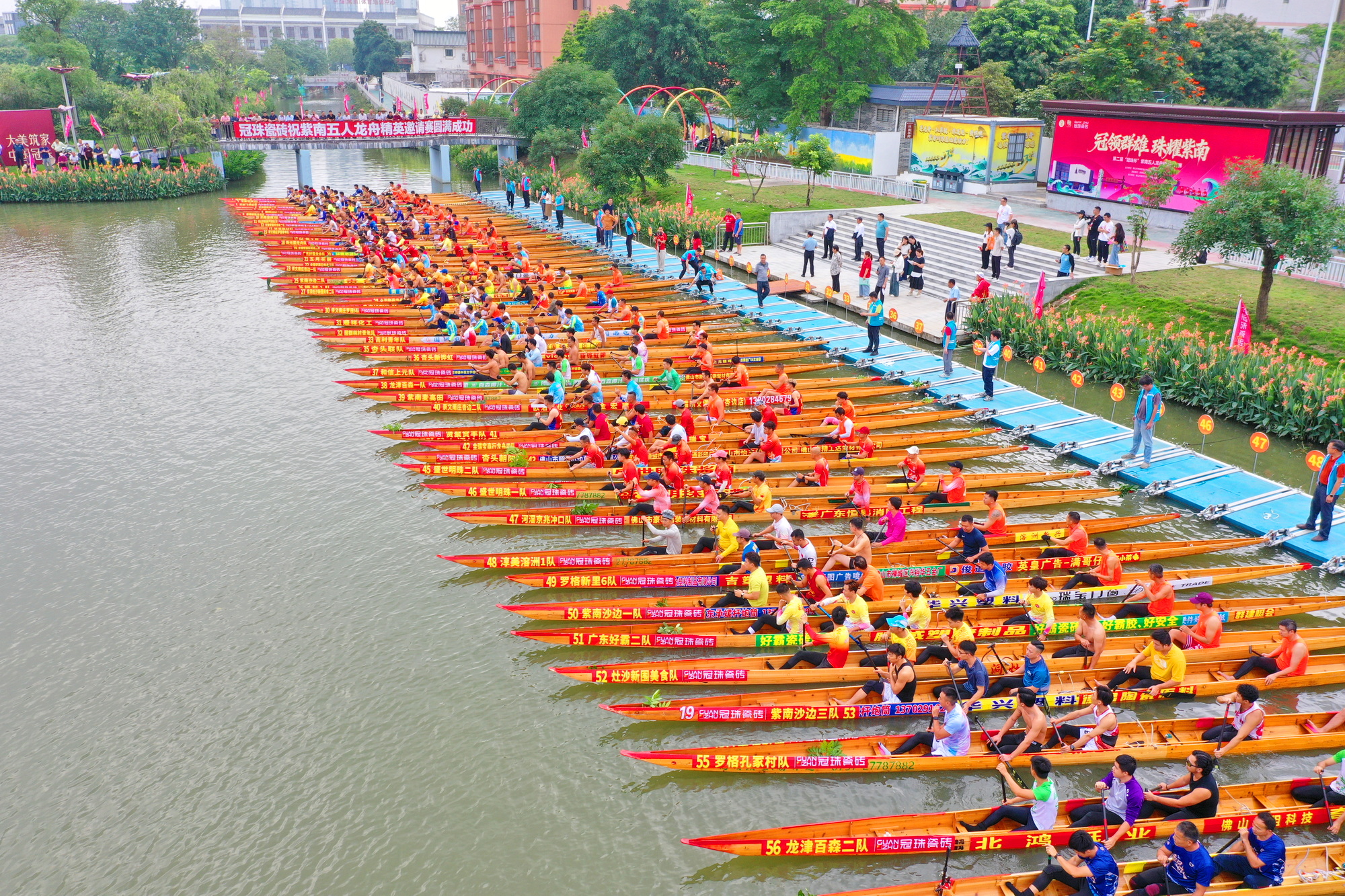 上午8时,紫南彩虹园码头早已人山人海,3公里长的河道岸线“站”无虚席。上万名观众翘首以待,只为一睹这场大湾区龙舟豪强的巅峰对决。