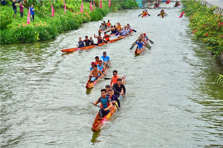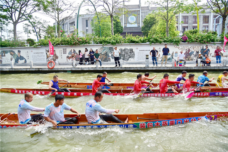 选手们在奋力挥桨的同时,也能欣赏到紫南村“中国龙舟文化名村”的独特魅力。礼园的岭南园林、吴信坤艺术馆的艺术气息、千米长卷岩板壁画的匠心独运……这条赛道,既是竞技的战场,也是文化的长廊。