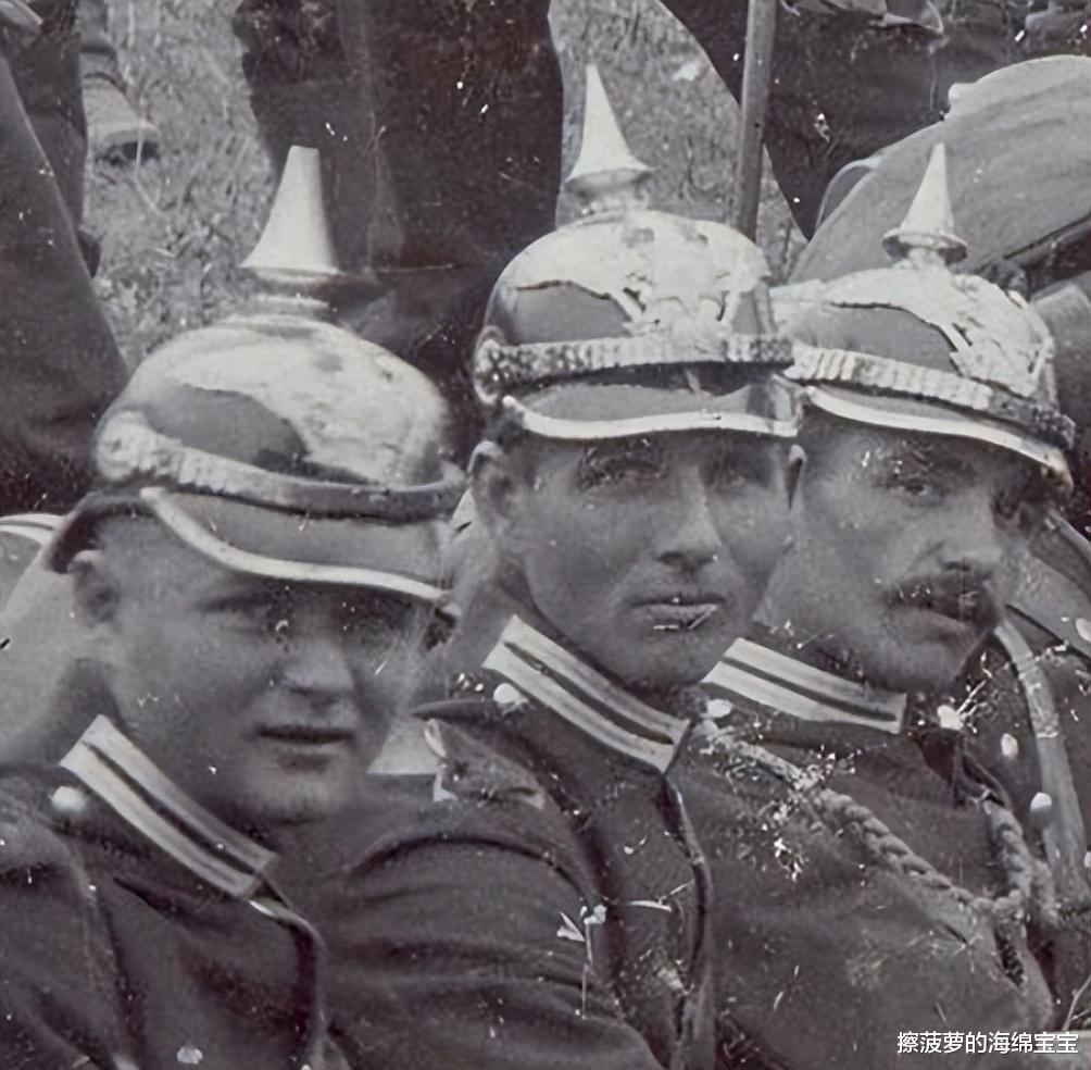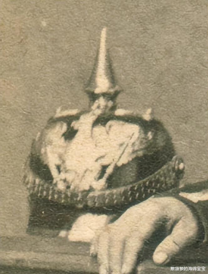 下巴带固定处和步兵单位使用的扁平黄铜下巴带,普鲁士帽徽变成了金属片。