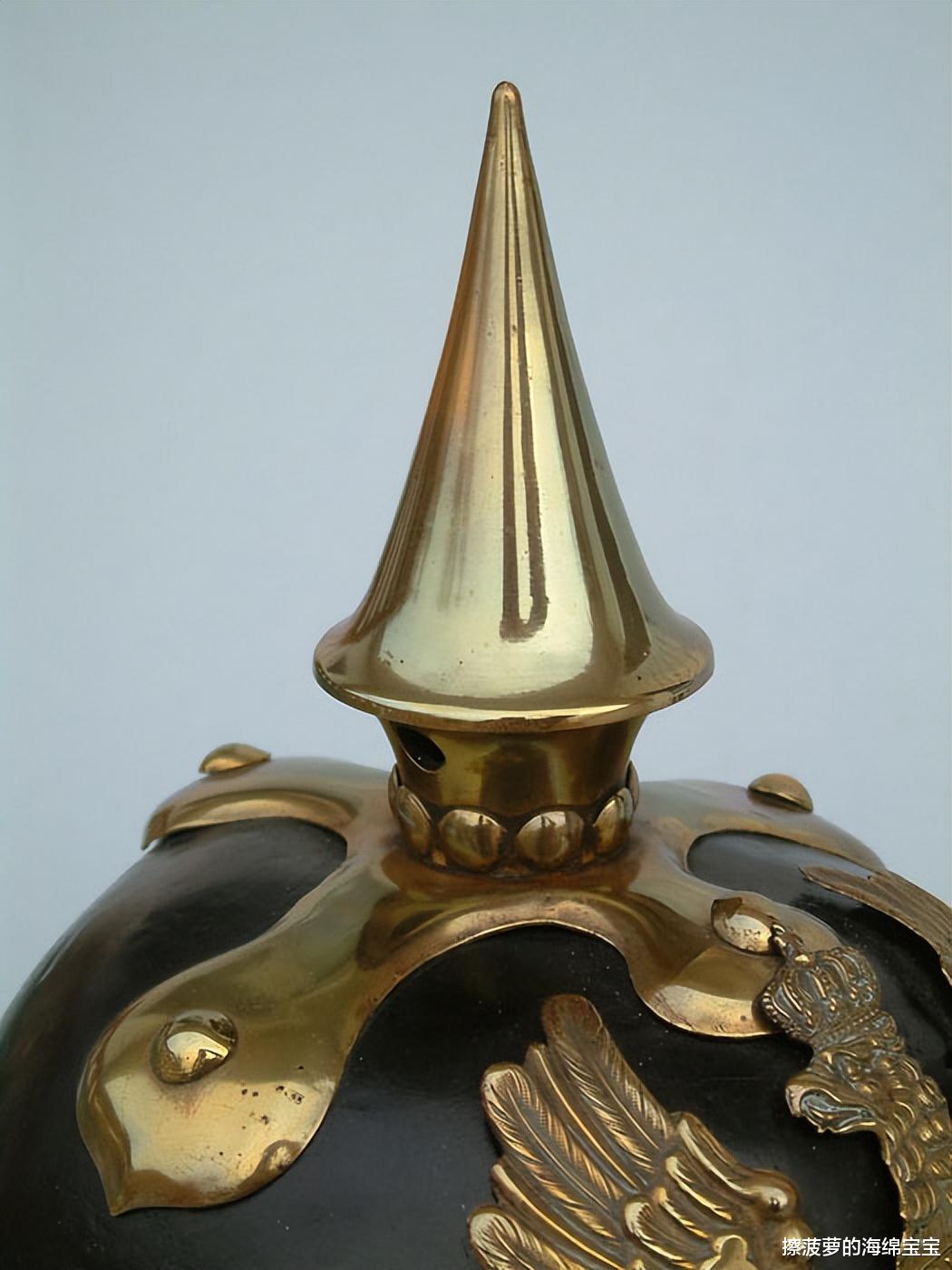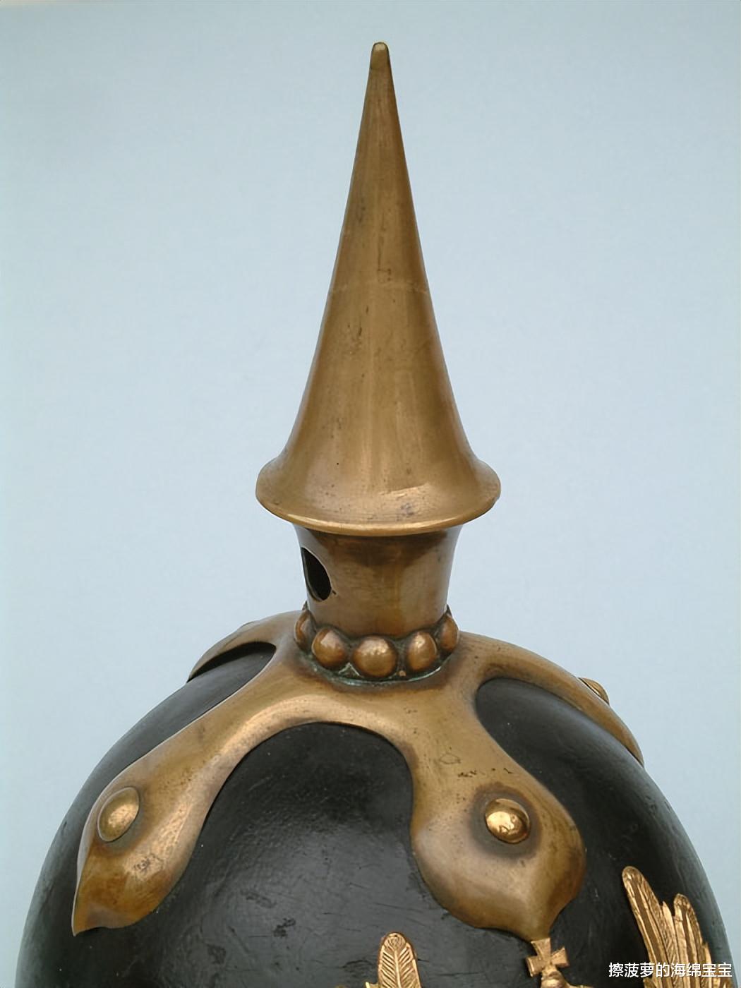 1871式尖顶盔1870到1871年普法战争的经验表明,尖顶盔前部的金属鹰徽并不能给佩戴者提供有效的防护力,而且容易在战斗中脱落。所以新的尖顶盔重新引入了带螺纹螺栓和螺母进行固定金属鹰徽。