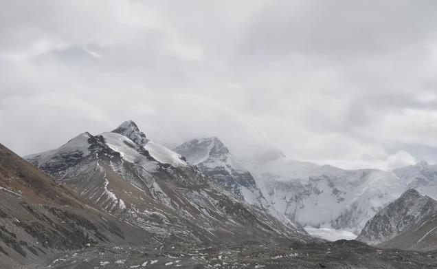 珠穆朗玛峰大本营,坐落在珠峰脚下一条狭长的山坳里,两侧山体林立,看上去结构比较松散