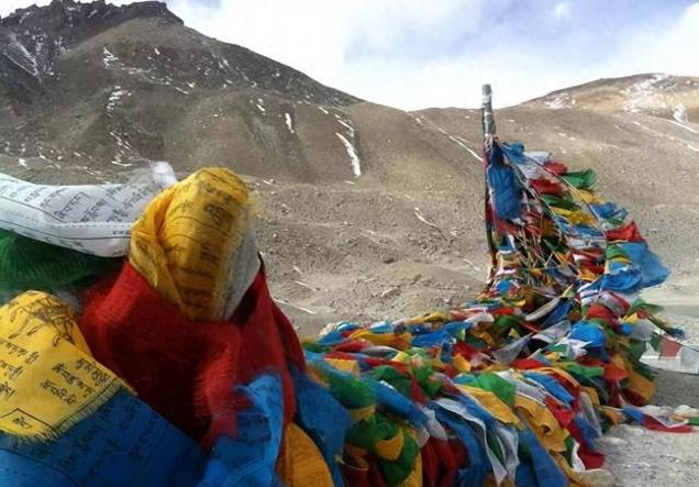 透过五彩的经幡,看到了远处的雪山,心中不由自主的念起:唵嘛呢叭咪吽!
