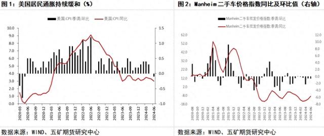 从6月份CPI数据来看,核心商品通胀不断去化,6月不含食品和能源类商品CPI环比值为-0.1%,其中新车和二手车CPI同比值持续下行至-4%,环比值为-1%。作为二手车通胀的领先指标,Manheim二手车价格指数同比值在2-5月份均录得两位数的降幅,6月Manheim二手车价格指数同比值为-8.87%,环比值为-0.63%。预计二手车通胀的去化将在未来三个月中持续驱动核心商品通胀缓和。
