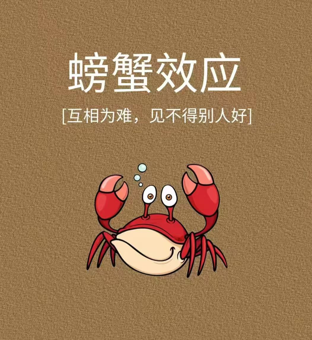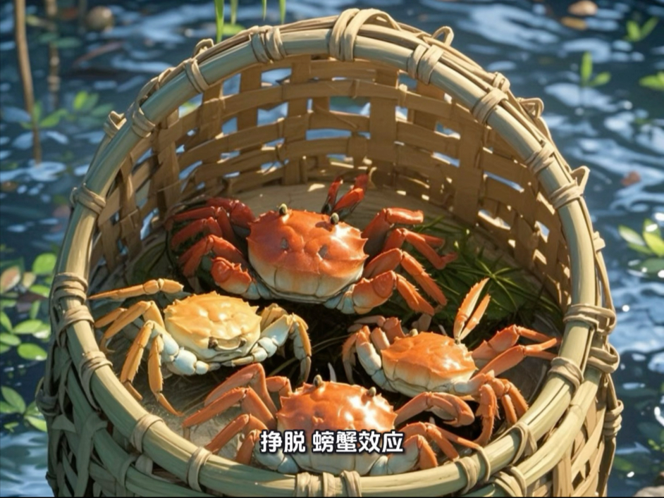 “木秀于林,风必摧之;堆出于岸,流必湍之。” 生活中总有这样一种奇怪的现象:单独一只螃蟹放进竹篓,无需加盖,它总能奋力攀爬逃脱;可一旦放进多只,即便敞着口,也没有一只能成功突围。每当有一只螃蟹奋力向上,其余的便会伸出螯钳死死拽住它的腿,将其拉回原地——“我爬不出去,你也别想挣脱”,这种互相拉扯、彼此内耗的困局,便是心理学上的螃蟹效应。它像一把隐形的枷锁,悄悄缠在很多年轻人身上,消磨我们的斗志,阻碍我们奔赴更远的未来。