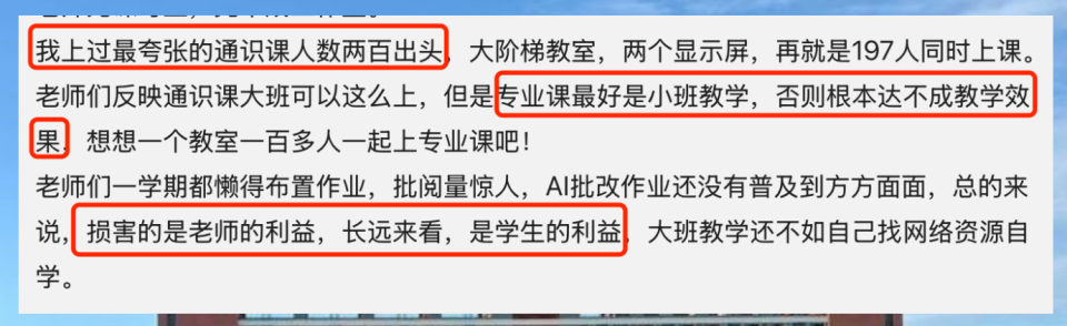 家长们也很担忧。一位大学生家长在评论区反映,她的孩子曾抱怨一门专业核心课根本听不清。“孩子说,坐在后几排,老师的声音混成一团,看幻灯片也费劲。这样下去,孩子能不挂科吗?将来拿不到毕业证怎么找工作?”