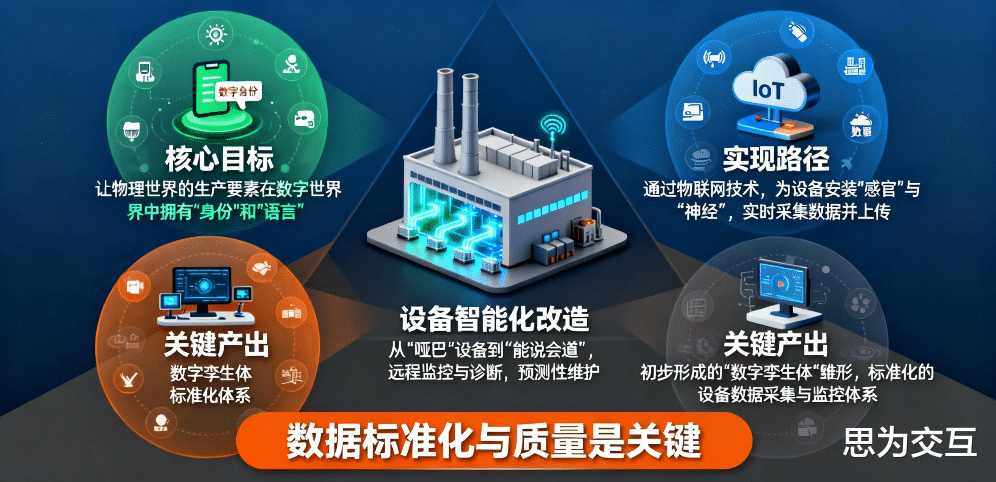 核心目标:让物理世界的生产要素(设备、物料、人员)在数字世界中拥有“身份”和“语言”。
