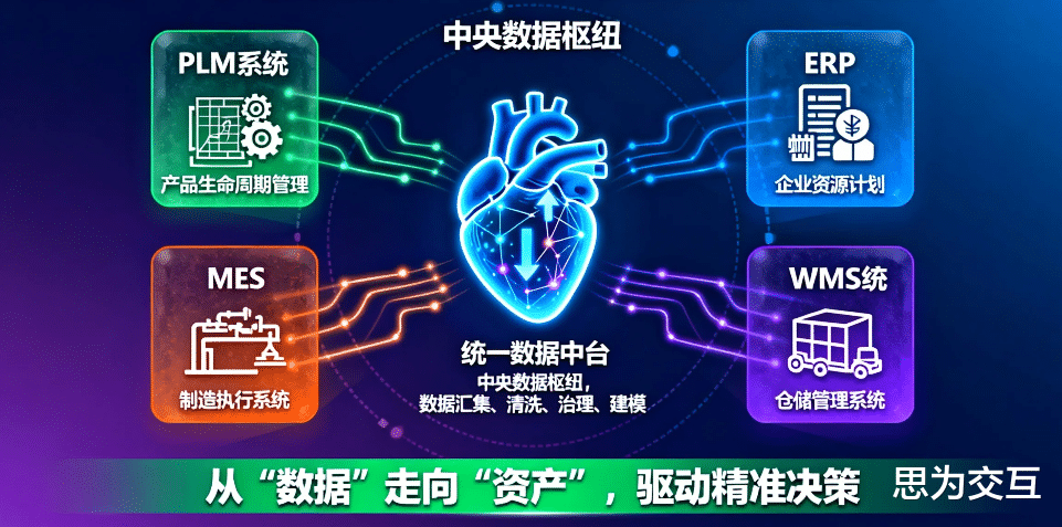 许多企业在完成了设备智能化后,会发现自己拥有了许多强大的“器官”:PLM系统管理着产品设计,ERP系统掌管着物料与财务,MES系统指挥着生产执行,WMS系统调度着仓储物流 。然而,这些“器官”之间却被厚厚的壁垒隔开,数据无法顺畅交互,导致设计与生产脱节、计划与执行脱节、生产与库存脱节。