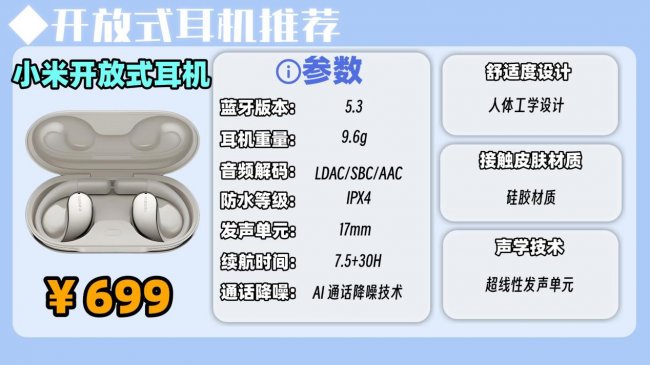 开放式耳机推荐TOP2:小 米开放式耳机(¥699)