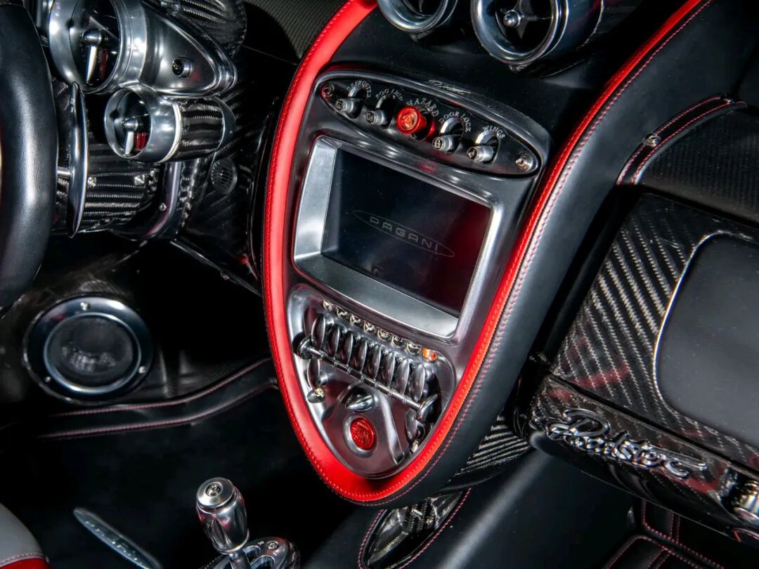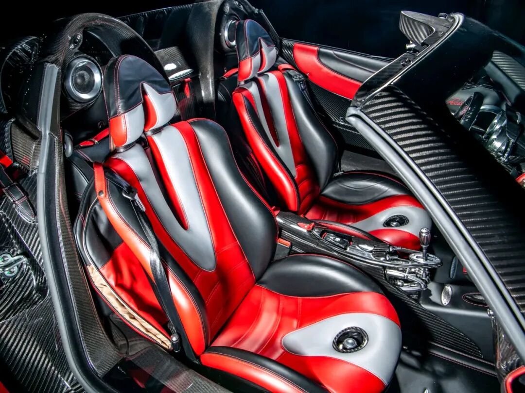 除了标配的轻量化Inconel钛合金排气系统、碳陶瓷刹车盘和前桥抬升系统外,这款Roadster还选装了黑色仪表盘、钛合金饰面的Huayra风格轮毂,以及内外饰的钛合金饰面铝制部件,营造出和谐统一的外观。