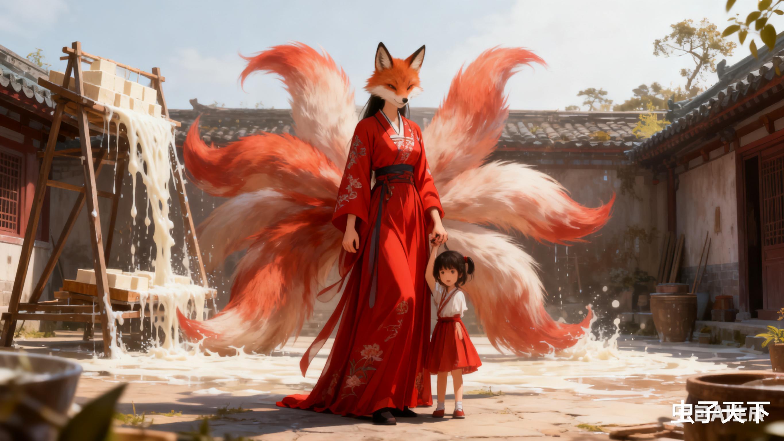 等我们冲回豆腐坊,院里已站了个穿红裙的女人,九条尾巴在身后晃成扇:“常老头,把泉眼让给我,不然你外孙女……”
