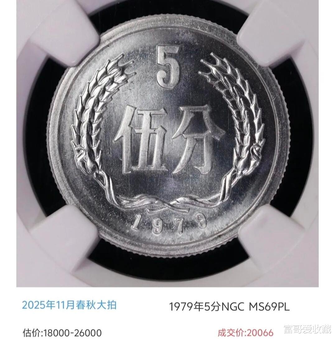 上面这枚品相较好的1979年5分,估价就达到了2.6万。